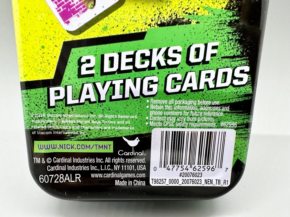 NEW Nickelodeon Teenage Mutant Ninja Turtles 2 Decks Of Playing Cards In Sealed Tin Box Can't show you what's inside because the tin is sealed. Complete! In many of my listings my pictures are my only description, so please look them over well! Please check my other auctions for lots of different and awesome items. Check out my Ebay store, There's something for everyone, no really, I have a ton of things listed! Never hurts to make an offer on something you like! https://www.ebay.com/str/desire4gifts I have new items every day. Any questions, please ask. I'm definitely a seller worth following!! I'm always adding new stuff, you never know what you'll find!! Don't forget to leave feedback!! :-) Help support small sellers!