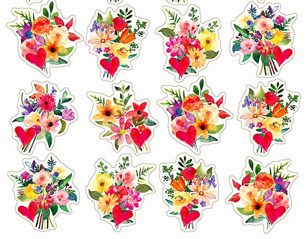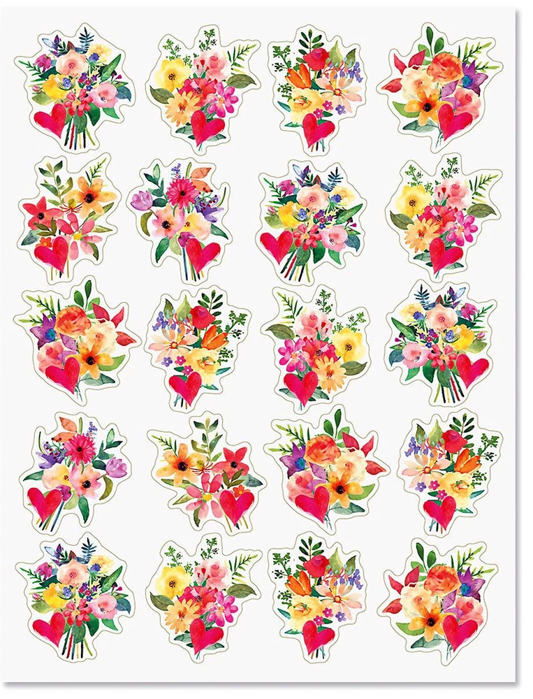 Painted Flower Bouquets & Hearts 40 Acid Free Stickers Valentine bouquet stickers brighten greeting cards, envelopes, notes, arts and crafts projects and more. Acid/lignin free. Largest sticker is 2"H. Comes on two 8 1/2" x 11" sheets. Printed in USA. Set of 40 Stickers came in sealed envelopes, not shrink wrapped. May have been opened for pictures. Time To Downsize! Cleaning out my Craft Room! I do offer combined shipping. If you are buying multiples of similar items, combined shipping is automatically calculated and will show up in your cart. I will be happy to COMBINE SHIPPING when possible . I will be happy to hold items a few days if you are bidding on more of my auctions. YOU MUST let me know you want to combine shipping at the close of your FIRST item. Combined shipping purchases must be made within a 7 day period & paid for in ONE payment. ( Combined orders MUST BE PAID all at ONE time in ONE payment & shipped to the same address.