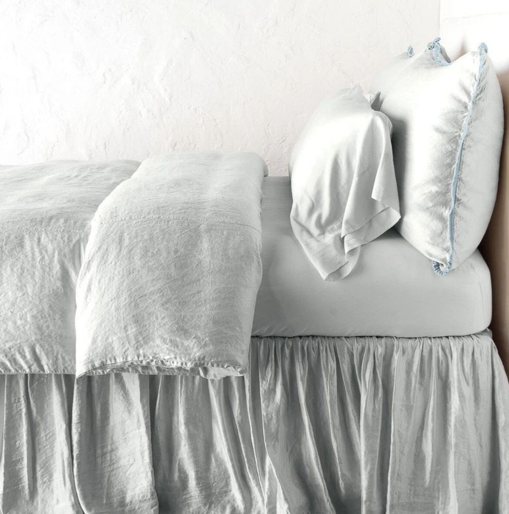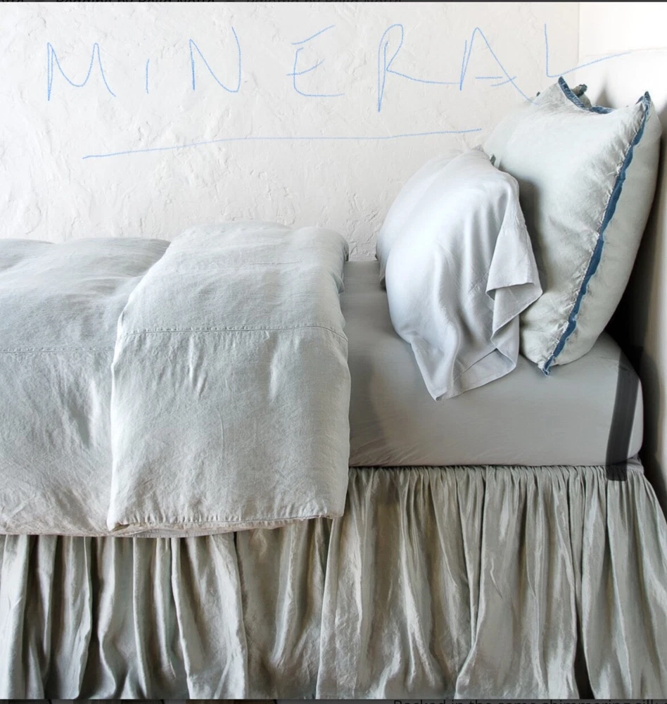 Just purchased and changed design plan. Brand New $1500 plus tax and shipping. Gorgeous pale blue grey. Duvet Only Matching pieces also will be sold Euro shams pair in mineral Queen 4 panel bed skirt mineral Loulah throw in velvet mineral Sterling velvet throw w ruching velvet Several Bella Notte items in white, mineral, grey, French Lavender , Amethyst, Petal, Honeycomb, Ivory Velvet Silk, Olivia, Whisper, linen, many items will be available. By the yard Mathilda, Matalesse Paloma