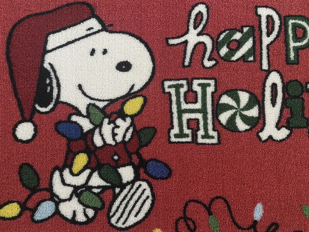 ***BRAND NEW WITH ATTACHED TAGS*** Peanuts Snoopy Welcome accent door mat "HAPPY HOLIDAYS" Flag measures 18 x 30 Comes from a smoke free home