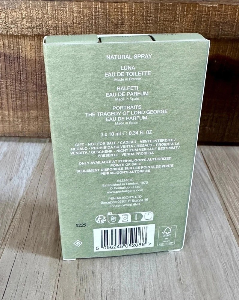 ⭐ NEW Penhaligon's 3-Piece Perfume Set: Luna EDT, Halfeti EDP, Lord George EDP ⭐ Condition: Brand New, Fresh & 100% Authentic Set Includes: 1 x Luna Eau de Toilette 10mL / 0.34oz Notes: Bright bergamot and lemon glide into night jasmine, soft rose, and fir balsam. 1 x Halfeti Eau de Parfum 10mL / 0.34oz Notes: Grapefruit and bergamot over saffron and rose. Settles into leather, oud, amber, tonka, vanilla, sandalwood. 1 x Portraits The Tragedy of Lord George Eau de Parfum 10mL / 0.34oz Notes: Lavender and rum with a heart of tonka. Dry down of ambrox, vetiver, and cedarwood.