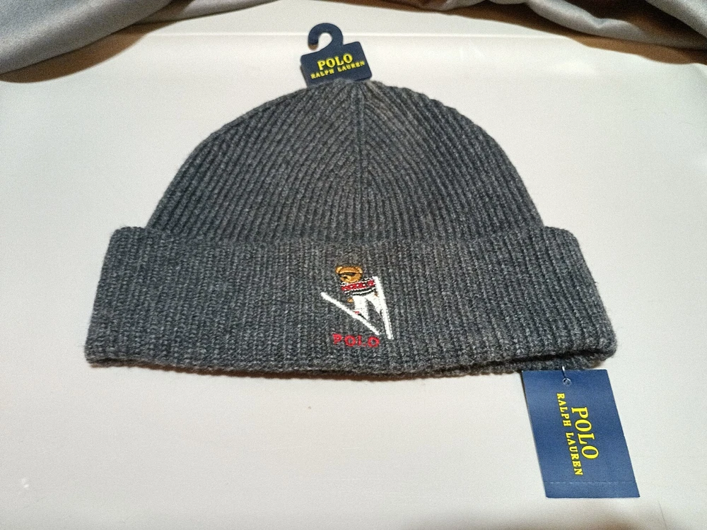 These Polo Ralph Lauren beanies combine style and warmth with their ribbed knit design and charming embroidered accents. Available in black and gray, with various designs, they make a cozy and fashionable accessory for colder months. Features : Design : Ribbed knit beanies with embroidered accents, including Polo Bear, French Bulldog, and Ski Bear designs. Color : Available in black and gray. Material : 50% Acrylic, 30% Nylon, 20% Wool. Collectible item : Unique Ralph Lauren embroidery for a signature look. Care Instructions : Hand wash for best results. Condition : Brand new with tags (NWT). Sold As-Is : All sales are final. Please review all images and details before purchasing. Shipping : Ships via USPS First Class or Priority Mail. Packaged securely to ensure safe delivery. Note : This listing is for multiple quantities in black and gray variations. The item you receive will be the same product but may not be the exact one pictured due to variations in the design or embroidery placement. Perfect for Polo Ralph Lauren fans or collectors of their iconic designs.