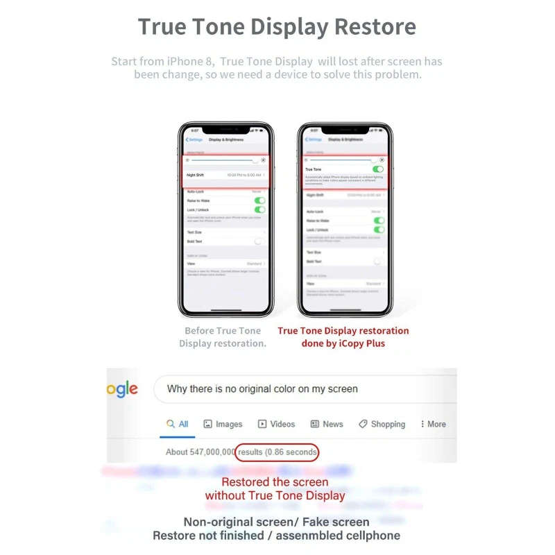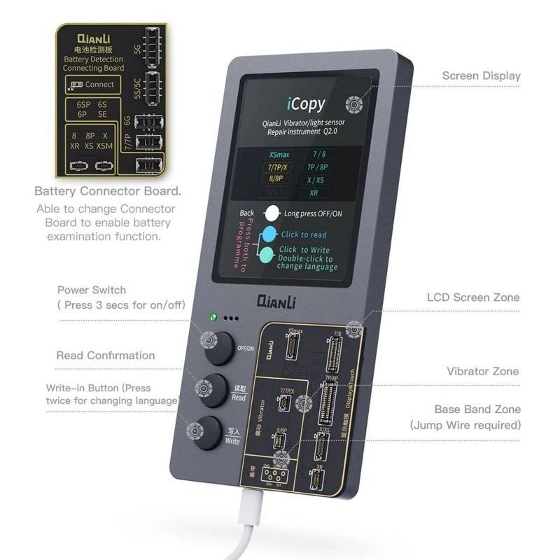 New item in high quality. What's New With Version 2.2 ? - With iCopy Plus V2.2 you get 3 PCB Boards: - Battery Service PCB For iP6-12PM - LCD / Touch PCB For iP7-11PM, - Data Cable / Headset Authenticity Tester Board PCB. All in All it's a multifunction device for transferring data on iPhone parts including LCD and Touch, Vibrating Motor and Baseband. BATTERY FUNCTIONS - iCopy can read and write battery data asw well as Battery Health, Modify Battery Efficiency, Clear Battery Cycle Life, Service Serial Number, Backup Battery Data on iPhone 5, 5s, 5c, 6, 6P, 6s, 6sP, 7, 7P, 8, 8P, X, XR, XS, XS MAX and newer models now also supported with compatible copy powers flex (SOLD SEPARATELY) 11/11P/11PM/12/12P/12PM/12M with new version 2.2 SCREEN DISPLAY & TOUCH - iCopy can transfer the chip data from the original iPhone screen to a replacement screen. This procedure restores the original colour for iPhone 7, 7P, 8, 8P, X, XR, XS, XS MAX, 11, 11P, 11PM VIBRATING MOTOR - Simply connect the original taptic engine and transfer original taptic engines data to the new taptic engine vibrating motor for iPone 7, 7P, 8, 8P, X. LOGIC BASEBAND TRANSFER - Use the iCopy se the menu system to acquire the baseband data. This Function Supports iPhone 6, 6P, 6s, 6sP, 7, 7P, 8, 8P, X, XR, XS, XS MAX. NEW For iCopy PLUS Version Battery Functions iOS Battery Health. Modify Battery Efficiency Clear Battery Cycle Life Service Serial Number Backup Battery Data This Function Supports iPhone 5/5s/5c/6/6P/6s/6sP/7/7P/8/8P/X/XR/XS/XS MAX and newer models now also supported 11/11P/11PM/12/12P/12PM/12M with new version 2.2 LCD Screen Display and Touch EPROM transfer This allows you to transfer the chip data from the original iPhone screen to a replacement screen. This procedure restores the original colour. This Function Supports iPhone 7/7P/8/8P/X/XR/XS/XS MAX/11/11P/11P MAX Vibrating Motor Data Transfer Simply connect the original taptic engine and transfer original taptic engines data to the new taptic engine vibrating motor This Function Supports iPhone 7/7P/8/8P/X Logic Baseband Transfer Connect to the baseband chip via jump wire using ISP pinouts on the logic board of the iPhone to the iCopy. Then use the menu system of the iCopy to acquire the baseband data. This Function Supports iPhone 6/6P/6s/6sP/7/7P/8/8P/X/XR/XS/XS MAX Package Contents 1 x iCopy Plus v2.2 Main Unit 1 x Updated Battery PCB Board (iP6-12PM) 1 x LCD PCB Board (iP7-11PM) 1 x Data Cable / Headset PCB Board 1 x Retail Box 1 x Manual 1. PayPal is the only payment method we accept. 2.Please confirm your shipping address is correct before you make the payment. 1.If your package is from outside USA, it will be shipped via economy shipping (usually 11-35 business days to deliver) without Tracking Confirmation or SpeedPAK shipping (usually 8-12 business days to deliver) with Tracking Confirmation, depending on shipping location. 2.If your package is from outside USA, we also offer express shipping with tracking service via EMS, which normally takes 7-13 working days to deliver, but you need to pay for the extra shipping cost. 3.If your package is from USA, it will be shipped via USPS First Class Package (usually 3-5 business days to deliver) with Tracking Confirmation or UPS Ground (usually 1-5 business days to deliver) with Tracking Confirmation, depending on shipping location. 1.We will re-send a new item to you if we make mistake to offer a wrong product. 2.We are not responsible for people or shipping damage. 3.If you are willing return item back to us, please keep it in original package. 1.We would like to earn your Positive Feedback. If we have not given you reason enough for positive feedback then please let us know how we can earn your 5-star rating before submitting yourscores. 2.Please Note: We don't accept negative feedback or open cases without communication, we believe that any problems can be resolved through.