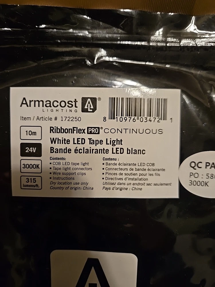 Introducing the RibbonFlex Pro 32.8 ft. (10M) 24-Volt LED Tape Light in White, with 315 Lumens. This high-quality tape light from Armacost is perfect for any home or garden lighting project. The tape is 3 ft. long and comes with a light sensor, making it easy to use and maintain. The LED lighting technology ensures bright and efficient lighting, while the white color of the tape adds a modern and elegant touch to any decor. This tape light is ideal for string lights, fairy lights, and other lighting projects. Order now and add a touch of magic to your home or garden!