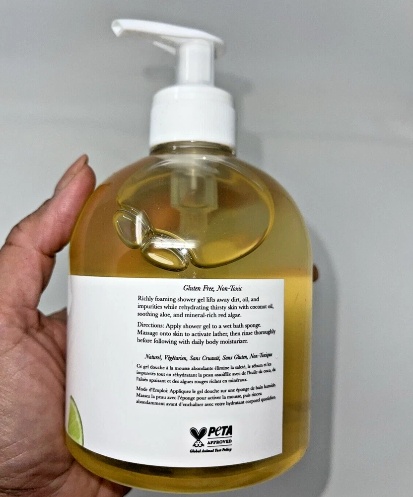 Richly foaming shower gel lifts away dirt, oil, and impurities while rehydrating thirsty skin with coconut oil, soothing aloe, and mineral-rich red algae. WHAT IT IS: SIZE: HOW TO USE: Apply shower gel to a wet bath sponge. Massage onto skin to activate lather, then rinse thoroughly before following with daily body moisturizer. KEY INGREDIENTS Honey Honey soothes skin and is a natural preservative. Red Algae Red Algae moisturizes and brightens dark spots. Green Tea Green Tea tones and protects with antioxidants. Key Lime Key Lime promotes glowing skin. Rose Hydrosol Rose Hydrosol tones skin and tightens pores.