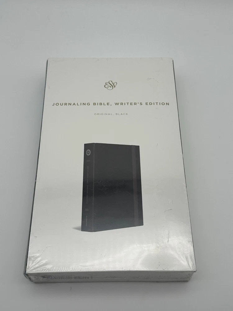 Enhance your Bible study with this ESV Journaling Bible, Writer’s Edition by Crossway, perfect for personal reflection, sermon notes, and creative journaling. Featuring a durable Smyth-sewn hardcover binding, cream-colored paper, and ample space for notes in ruled margins, this Bible is designed to last and be cherished. With its sealed, pristine condition, this edition makes a wonderful gift or collector’s item for any Christian enthusiast. Don't miss the opportunity to add this versatile Bible to your collection or daily devotions. The book is in brand new, sealed condition with its original plastic wrapping intact. The outer box shows some light signs of shelf wear with minor scuffing on the surface and edges. The Bible itself is untouched and in pristine condition, ideal for collectors or those seeking a high-quality journaling Bible.