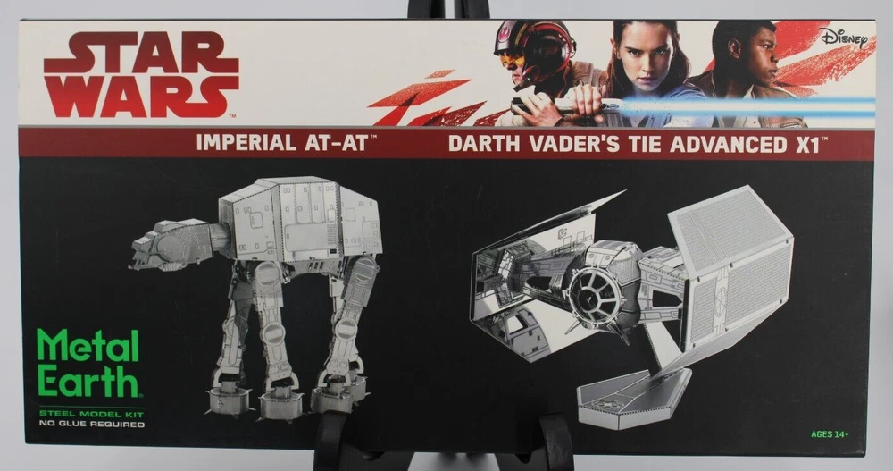NEW! STAR WARS METAL EARTH IMPERIAL AT-AT WALKER/DARTH VADER'S TIE ADVANCED X1 Factory Sealed Steel Model Kits No Glue or Solder Needed Packaging Contains 4 Metal Sheets Illustrated Instructions See photos for details