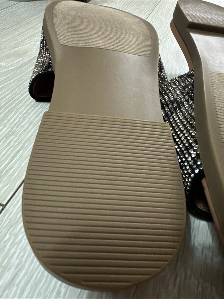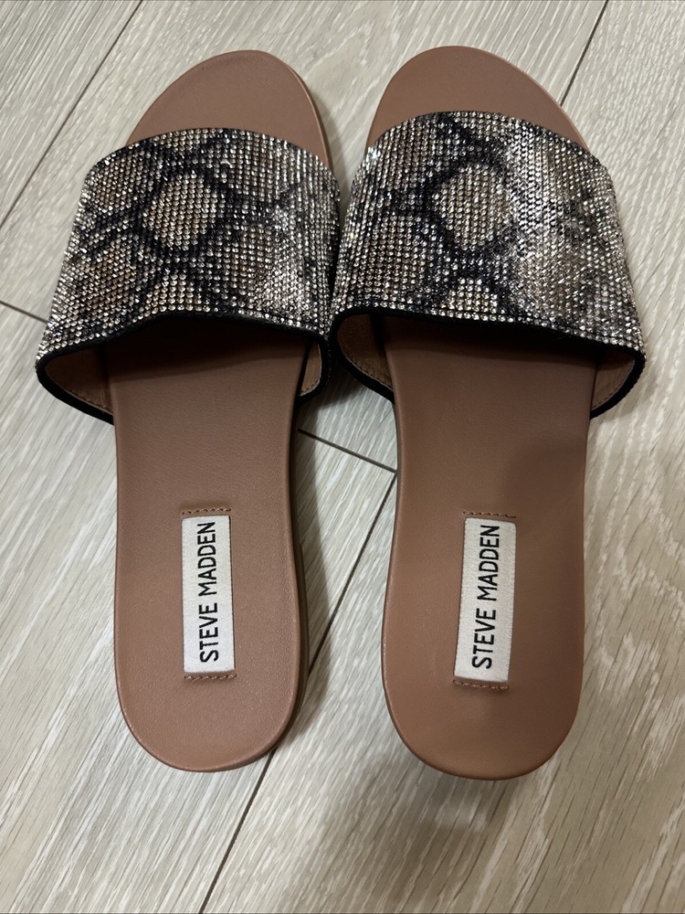 NEW Steve Madden Klove Woman Sandals Flat Slip On Rhinestone Strap Size 8.5M