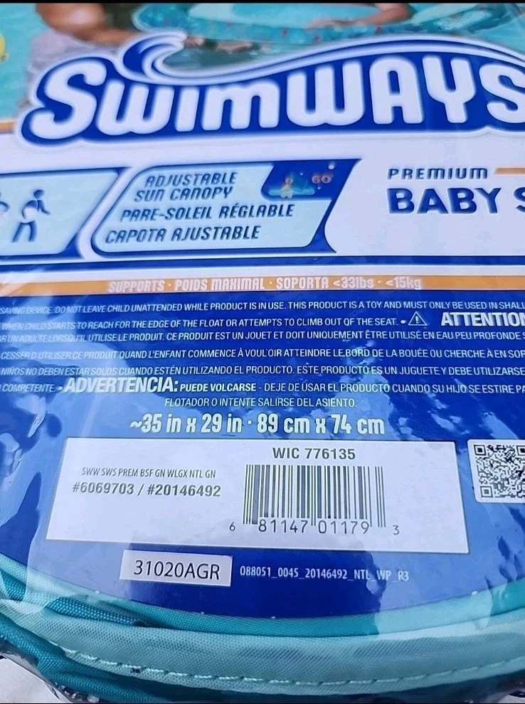 NEW SwimWays Baby Spring Float with Adjustable Sun Canopy 35x29"