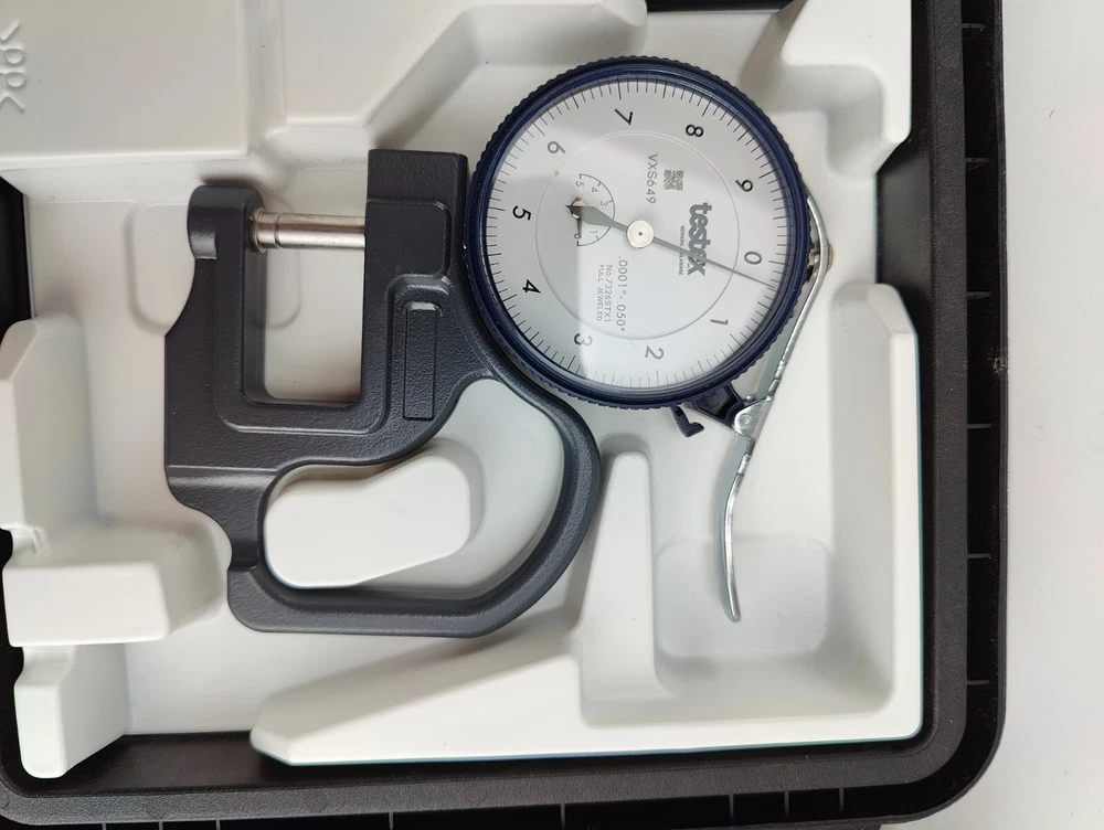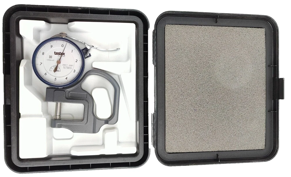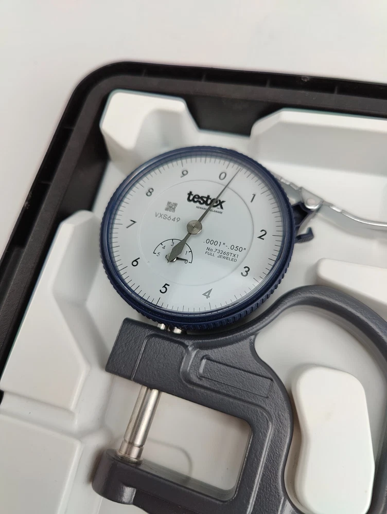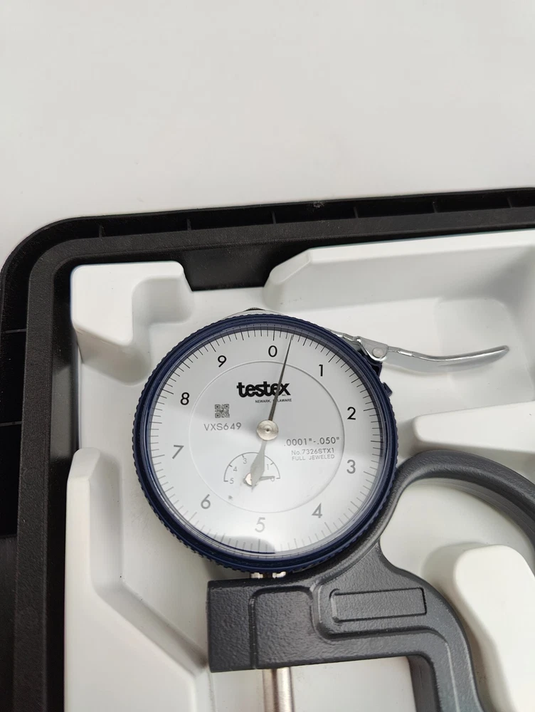 NEW Testex 7326STX1 Full Jeweled Dial Thickness Gauge Mechanical .0001-.050" This was not used in service, it was a back-up that was calibrated and put in the tool crib, there is writing on the case and they're is minor shelf wear on the tool itself from being handled, comes exactly as pictured in photos, please view carefully, price will be marked down accordingly "CALIBRATION EXPIRED IN 2024"