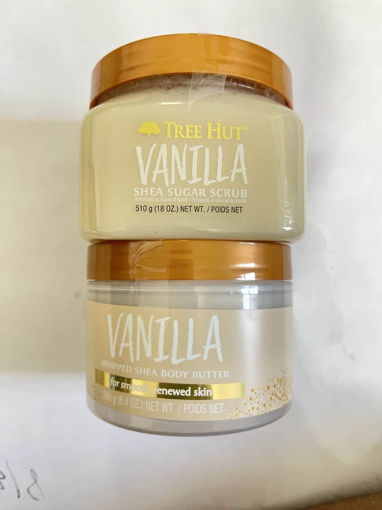 Free Shipping Made with vanilla fruit, oat kernel extracts & colloidal gold. All Tree Hut products are formulated with high concentrations of skin-loving, plant-based ingredients such as certified organic shea and do not contain parabens, DMDM, or petrolatum