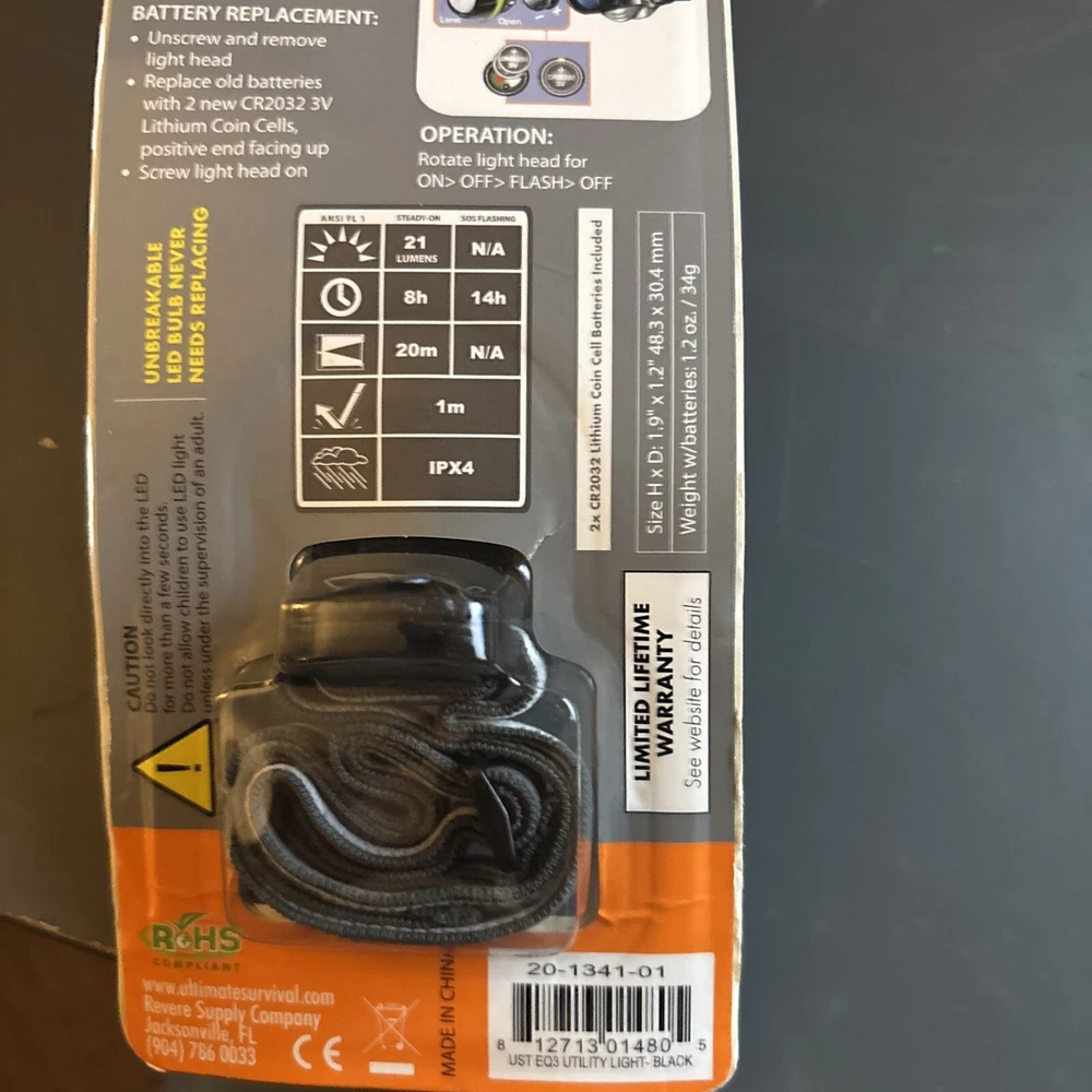 NEW UST eQ3 LED Headlamp Utility Light - 21 Lumen - 20-1341-01 - Black