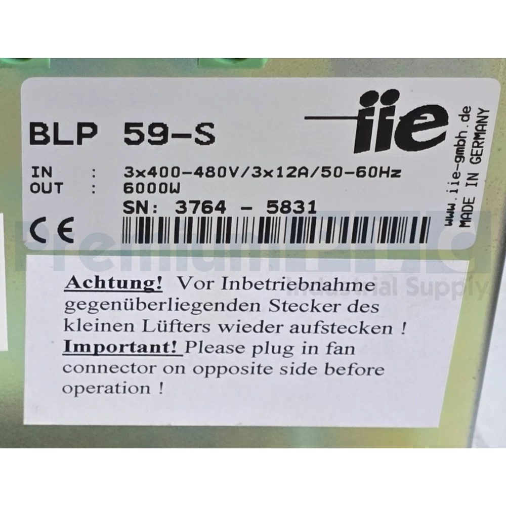 NEW UV Technik IIE BLP 59-S / BLP59S UV AC POWER SUPPLY BALLASTS 6000W NSNP Technical data: Main supply: 3~400 V, PE Lamp voltage: max. 500 V Lamp current: max. 15 A Efficiency: typ. > 95% Power level: 1 – 100 % stepless (minimal power depending on lamp type and cooling) Control signal: 0-10 V analogue Feedback: lamp voltage 0-8 V Fault signal: digital fault monitoring, analogue indication Measures: appr. 400 x 125 x 270 mm³ Weight: appr. 14 kg CONDITION: NSNP - New Surplus No Manufacturer Package (OEM). W/MINOR SHELF WEAR COMES JUST AS SHOWN IN PHOTOS. WARRANTY: 120 DAYS SAME DAY SHIPPING AVAILABLE ON ORDERS MADE BEFORE 4PM EST. (CAN SHIP COLLECT ON UPS OR FEDEX ACCOUNT) _________________________________________________________________________________________ PALLET/163