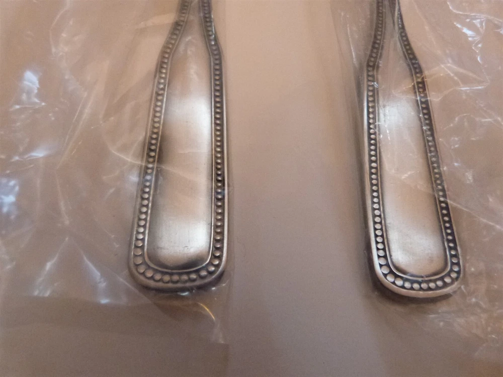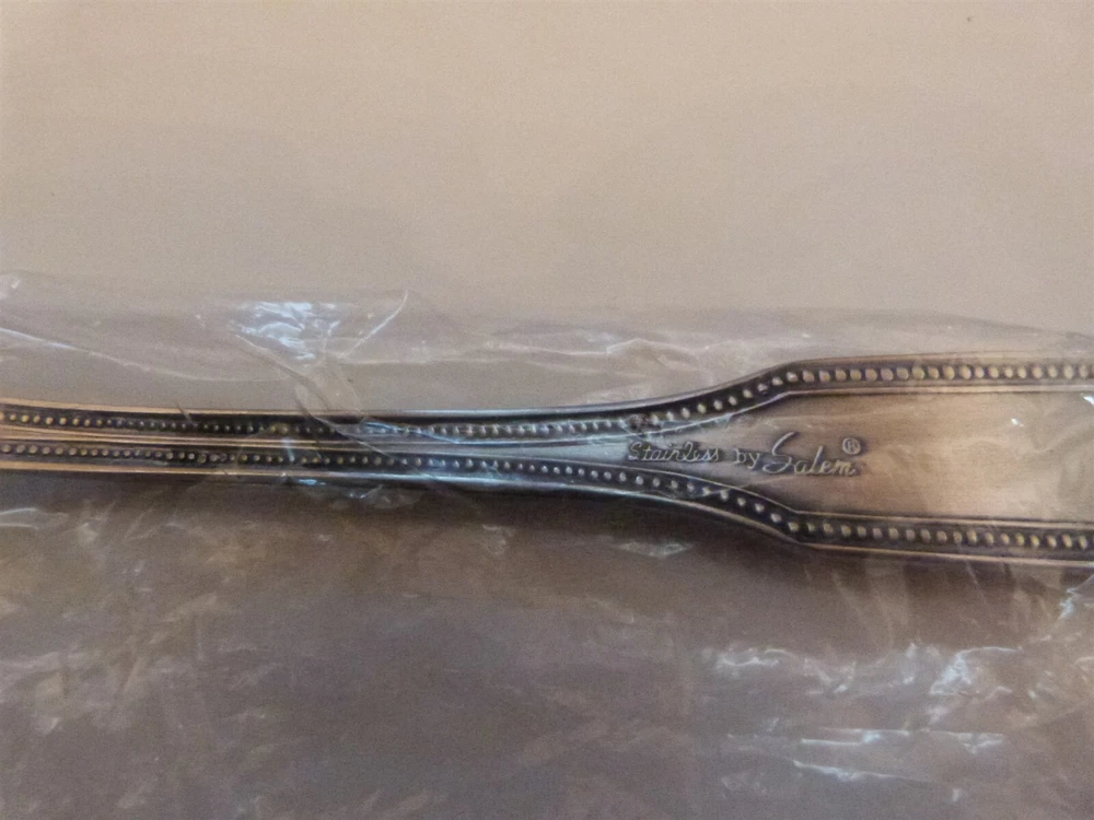 Watchful Eagle Antiques (Please read entire listing carefully, especially Description and Condition portions) Title: NEW VINTAGE 1776 Stainless Flatware by SALEM SALAD SERVING FORK & SPOONS 8.5" Description :Up for sale is group of 1776 Stainless Flatware by SALEM. These have Satin Handle with glossy Beaded Edge .These appear to have never been used since they are almost all in the original plastic sleaves. We have a number of groups in this pattern, so please check out our other listings. We will be happy to pass combined shipping savings onto you when available. This is a MUST HAVE for your collection! BUY IT WHEN YOU SEE IT! DON'T MISS OUT! Size : 8.5" Marks : Stainless by Salem Condition : Excellent in original plastic. No signs of use. . I am including numerous photos that will allow you to accurately assess the condition and make an informed decision. In general, the first photos concentrate on providing view from all sides and any markings. The last photos are generally utilized to focus on any condition issues that may exist. We will be happy to answer any additional questions which you may have or provide additional photos if necessary to aid in your evaluation. Price reflects condition. Please check our other listings, when possible we will reduce shipping when multiple lots are purchased. CLICK HERE to view our other listings. You may need to search on a key word to find your specific item. Shipping and Handling Costs: We attempt to make a fair guess as to US shipping rates in order to allow for buyer to judge total cost while bidding. The shipping method could be FEDEX or USPS (United States Postal Service) whichever is more economical for us, for this reason you may be required to provide a physical address that can be utilized by FEDEX and not a PO Box if the situation warrants. The bidders will be responsible for paying the specified amount. The costs are only applicable to the contiguous 48 states. If multiple items are purchased, a reduced shipping cost will be provided when possible. Alaska, Hawaii and U.S. Territories Buyers: Shipping to Alaska, Hawaii and non-continental U.S. Territories will be calculated after purchase and may require additional shipping cost. If you would like a shipping estimate prior to purchase, please feel free to contact us. International Buyers: We currently participate in Ebay's Global Shipping Program. Please work with the Ebay's Global Shipping group to get shipping estimates and details on the Global Shipping Program process. Please know that because international shipping can be expensive, we do not offer any shipping reimbursements in the event of a return, breakage or a lost package. Purchase of this item signifies your agreement to these conditions . A little bit about us: Hello, we are antiques and collectible dealers who find most of our items at garage sales, auctions, and flea markets. We are not experts on many of the items which we sell, but we do try to provide you with detailed descriptions and whatever research / knowledge we have on it. We have been collecting for over 30 years now and have many items in our inventory (i.e. lovingly packed in boxes which have not seen the light of day for many years). We have a little bit of everything so please view our other listings. We try our best to accurately describe all items but please view photos as they are the best representation of condition. If you are unsatisfied please contact us before leaving negative feedback. Thanks for viewing and happy bidding!!!! Ours is a smoke free home, but many of our items are purchased second hand and we do not know the situations where they have previously been stored. If we notice the smell of smoke, we do mention it under condition. Powered by SixBit's eCommerce Solution
