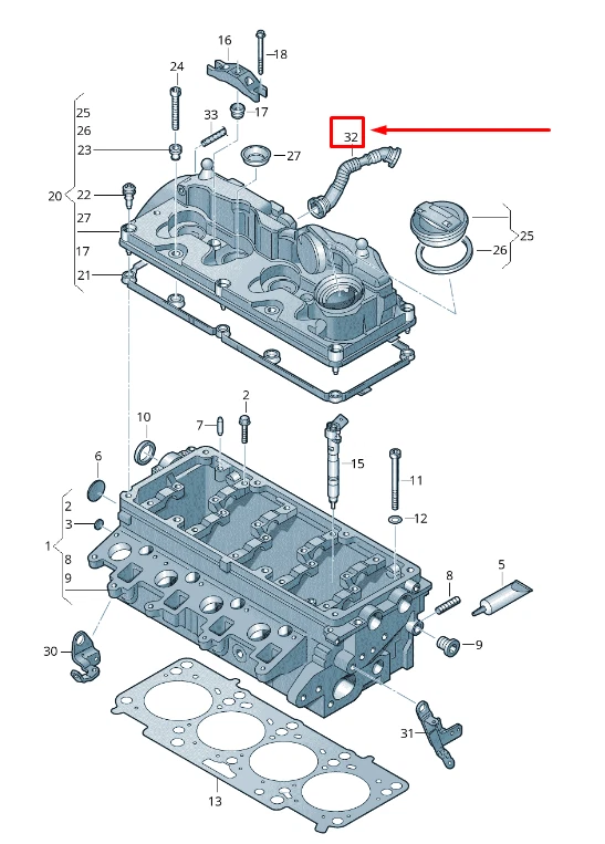 NEW VW AMAROK 2H ENGINE VALVE COVER BREATHER LINE 03L103493H ORIGINAL