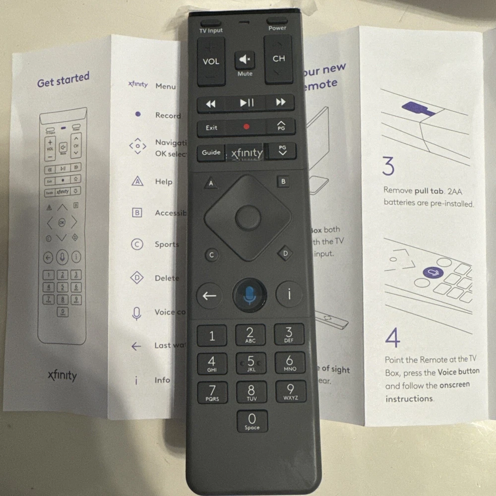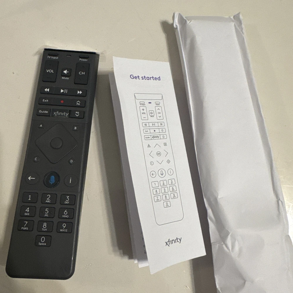 Comcast Xfinity wireless voice activated remote control brand new with original bag and plastic covering sensor. Includes 2 AA Duracell batteries and Getting Started Guide.