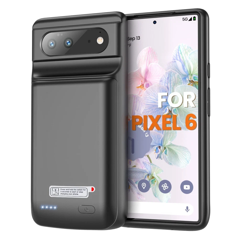 NEWDERY Battery Case for Google Pixel 6 6.4", 10000mAh Ultra Powerful Rechargeable Charging Case, Protective Extended Backup Charger Case for Google Pixel 6 5G (2021 Released) Description Features: [Battery Case for Google Pixel 6 6.4" ] NEWDERY 10000mAh battery case ONLY for Google Pixel 6 5G-6.4inch (NOT for Pixel 6 pro 6.7"). Due to it will extended 140% power to your phone, it will adds the weight and volume to the phone. Note: NOT support wired headphone, wireless charging, Android Auto or transfer data. [10000mAh Pixel 6 Battery Case] Equipped with a powerful 10000mAh built-in lithium polymer battery chip, effectively adds 140% power to your phone, never worried about your phone ran out of battery in daily life. Perfect for traveling, camping or business trip. [Smart LED Indicator] Smart LED indicator make you easy to track the battery power. The 4 LED lights on the back show the consumption of the charger case(0-25%-50%-75%-100%). One-click to start to charging your phone or track the battery, double-click to stop charging. [ Full Protection & Safe Charging] Soft rubber and hard shell plate protect your pixel 6 from scratches and collisions. Raised bezels help you to protect the screen to some extent. Pixel 6 5G battery case certificated by CE, FC and RoHS. Built-in smart chip protect your phone from overheating, short-circuit and overcharging. Provides a safe charging environment to your phone. [What you get] Package including: 1*Battery Case for Google Pixel 6, 1*User Manual. If you have any problem, please feel free to contact us via your order. You will get the professional service from our NEWDERY Customer Support Team. Product Details: Brand: NEWDERY Compatible Phone Models: Google Pixel 6 5G-6.4inch Color: Pixel 6 Compatible Devices: Google Pixel 6 Material: Rubber Product Dimensions: 6.45 x 3.18 x 0.94 inches Item Weight: 7.4 ounces Item model number: ZHX-205B Batteries: 1 Lithium Ion batteries required. Special features: Shock-Absorbent Other display features: Wireless Form Factor: Bumper Color: Pixel 6 Manufacturer: Shenzhen Zhenghaixin Technology Co., Ltd. Country of Origin: China Date First Available: September 24, 2021 Handling We will ship all orders within 3 business days of payment. Delivery We do not ship outside of the Continental US. Feedback We take our reputation seriously, we buy and sell online, so we understand the value of trust. If you are unsatisfied with your order, please contact us and we will work with you to resolve it to your satisfaction.