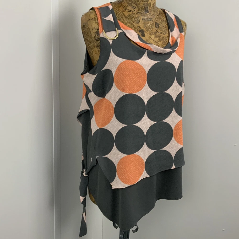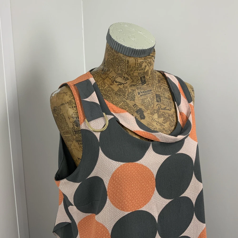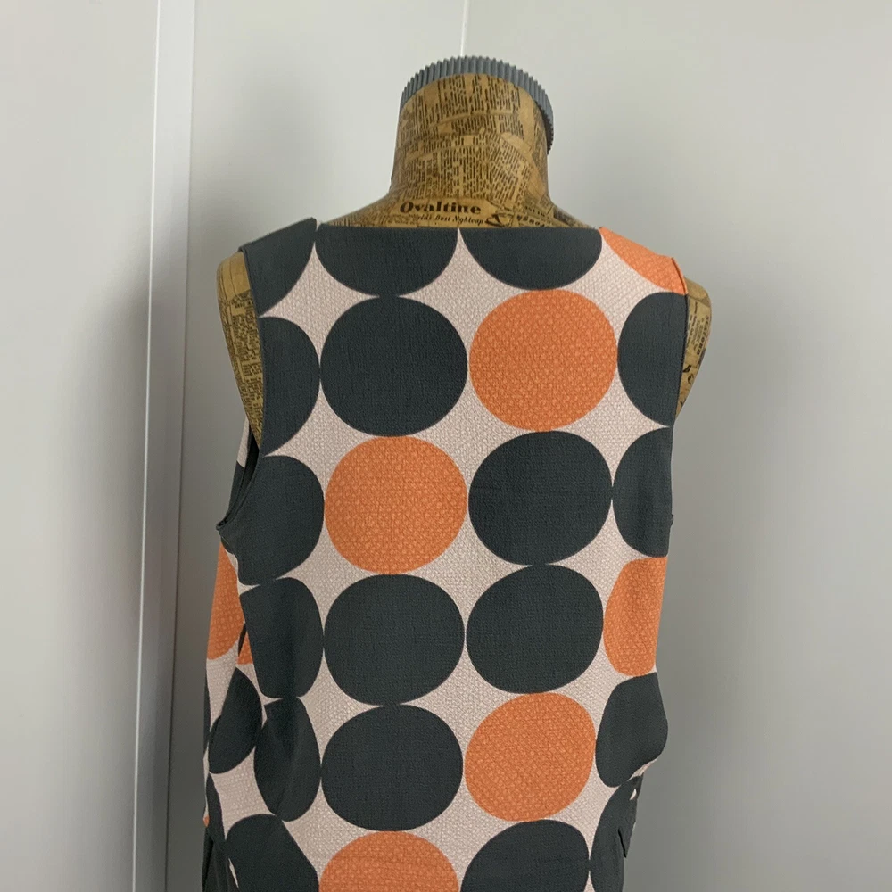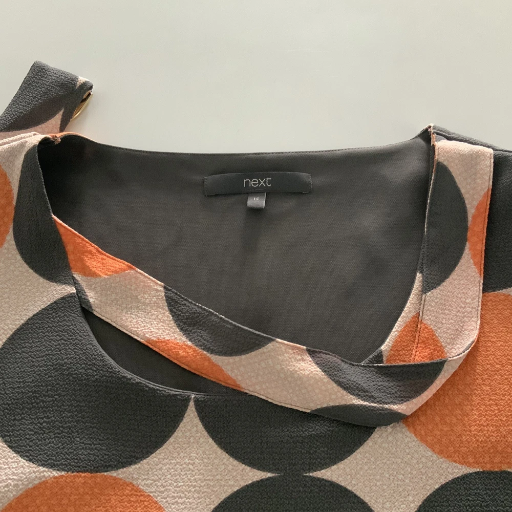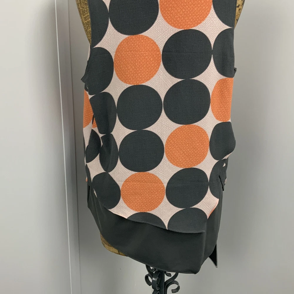 NEXT WOMENS VEST TANK Grey Orange Geometric Uk 14 Perfect for a casual day in style GOOD used condition light signs of use no rips stains or faults See images for sizing of width of top from seam to seam at armpit level when laid flat and also length from top at nape of neck under collar to lower hem Shipped promptly within one working day of sale NOTE there is PREMIUM delivery available at an additional cost please select the upgraded postage on check out