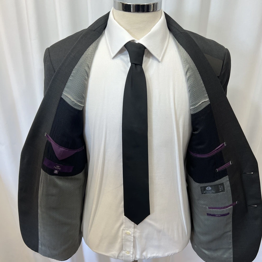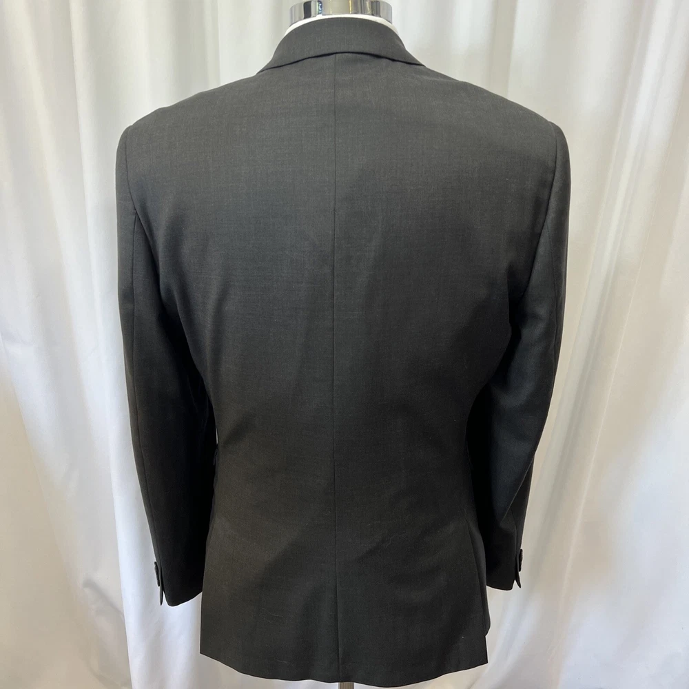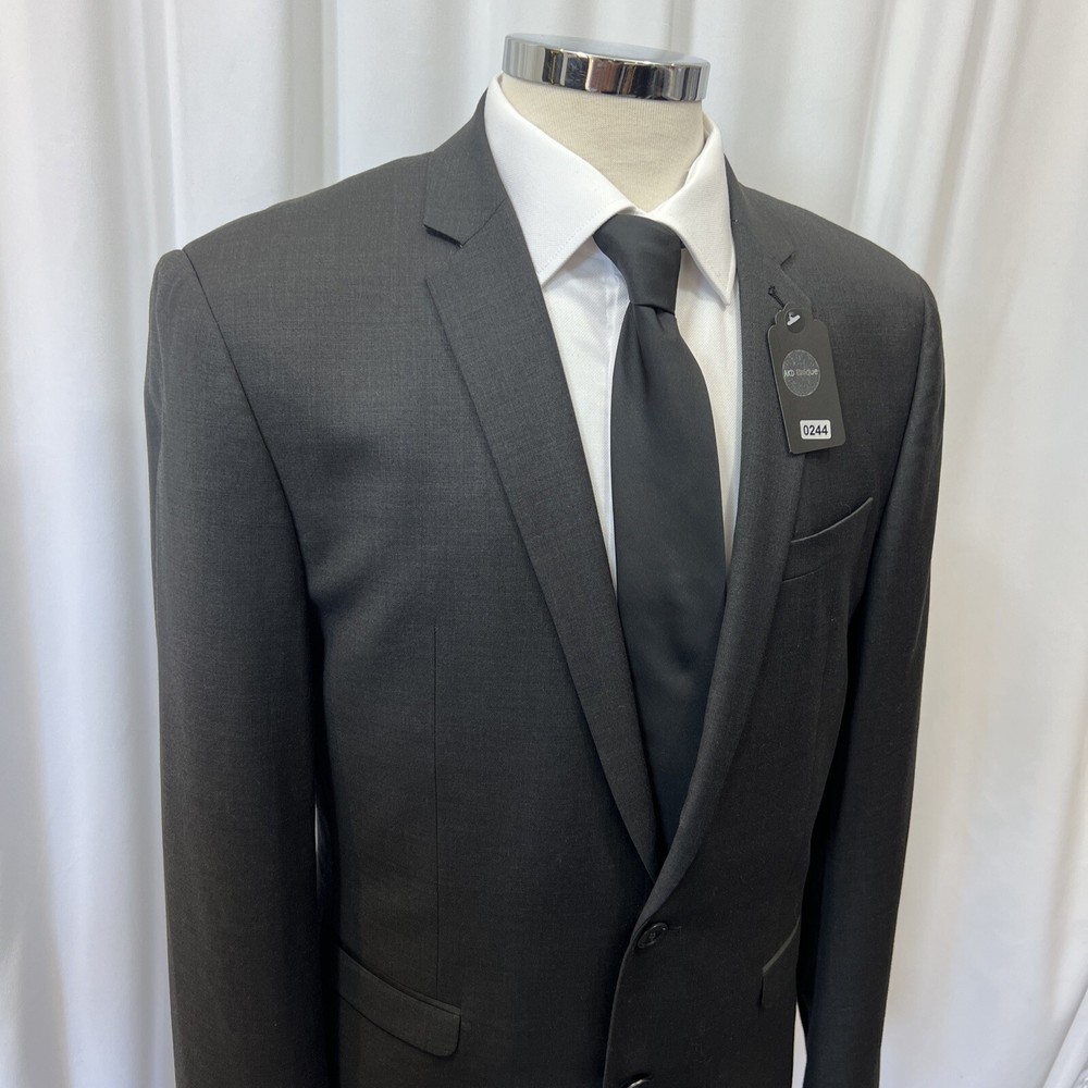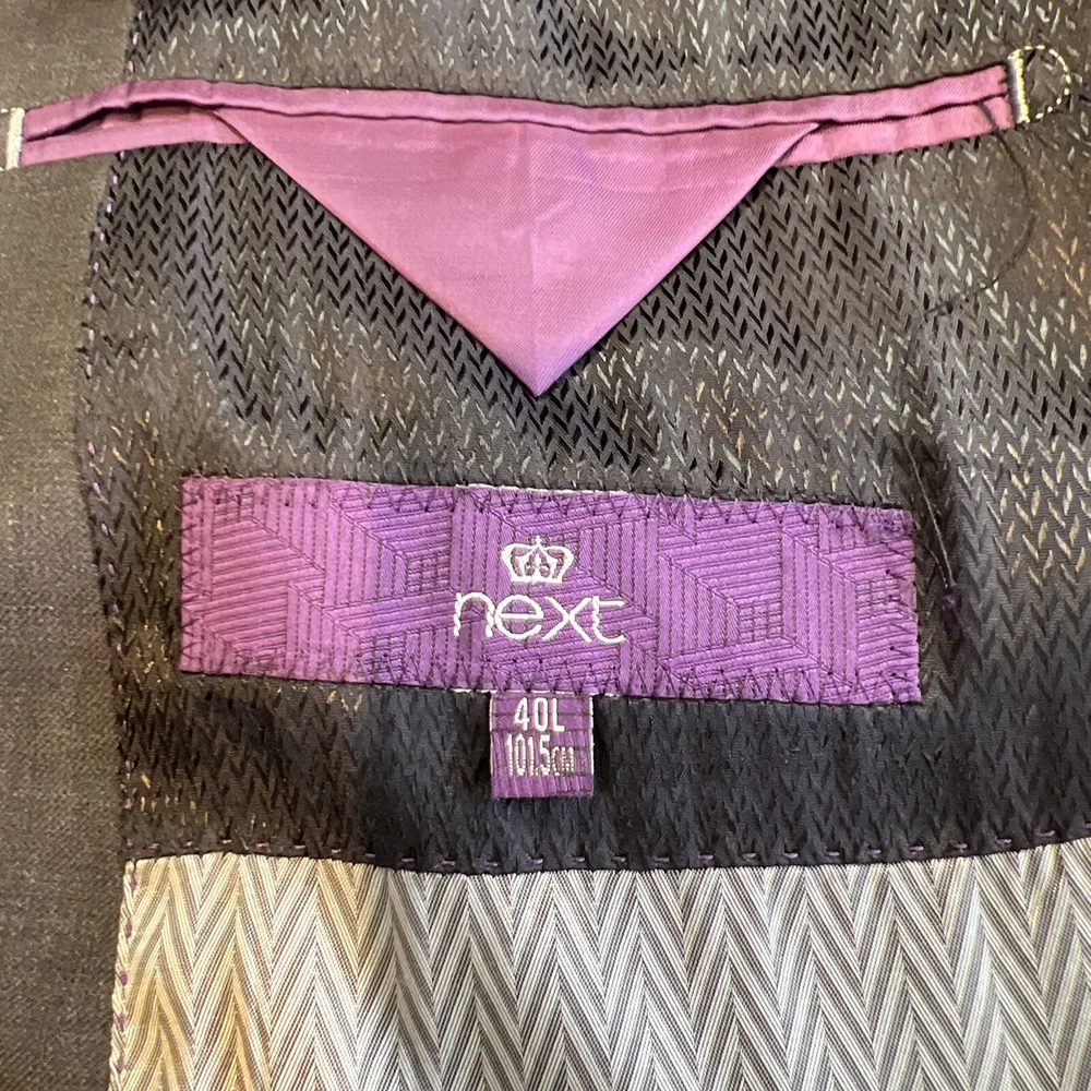 NEXT TAILORING Dark Grey Wool Blend Slim Fit 2 Piece Suit Jacket Chest: 40L" Inside pockets: 4 Front pockets: 2 Breast pocket: 1 Buttons to each cuff: 4 Buttons to front: 2 Back vents: 2 Shoulder to cuff: 27" Armpit to cuff: 18.5" Armpit to armpit when laid flat: 21" Shoulder to shoulder: 18" Collar to hem: 30" Trousers Waist: 34" Zip Front pockets: 3 Back pocket: 2 1 button & 2 hook fastening Inside leg: 33" (can drop 1.25") Width of hem at bottom of trousers: 8" AKD0008-244 Please note: Colours may slightly vary due to lighting conditions Each item undergoes meticulous hand-measured scrutiny; sizes may not align precisely with the label Review measurements and review the item description/photos before placing your bid Unfortunately, we cannot provide additional photos once items are listed The shirt and tie are not included unless explicitly stated in the listing Questions and concerns: Reach out to us through the ebay messaging system - we aim to respond within a maximum of 12 hours Ironing guidelines: Garments may arrive with minor creases Refer to the care label and use continuous steam when ironing We recommend dry cleaning for best results and peace of mind Your feedback matters: Please leave us a 5-star rating if satisfied For issues or concerns, please contact us before leaving feedback Returns: We offer a generous 30-day return period, via the ebay returns centre Please return items in their original packaging with all tags attached Buyers cover return shipping costs unless items are faulty or inaccurately listed