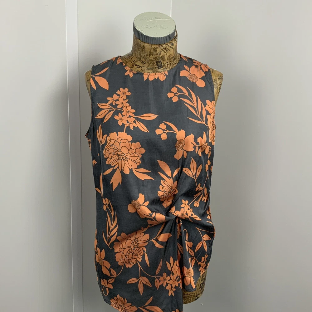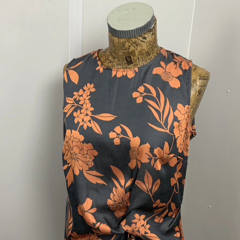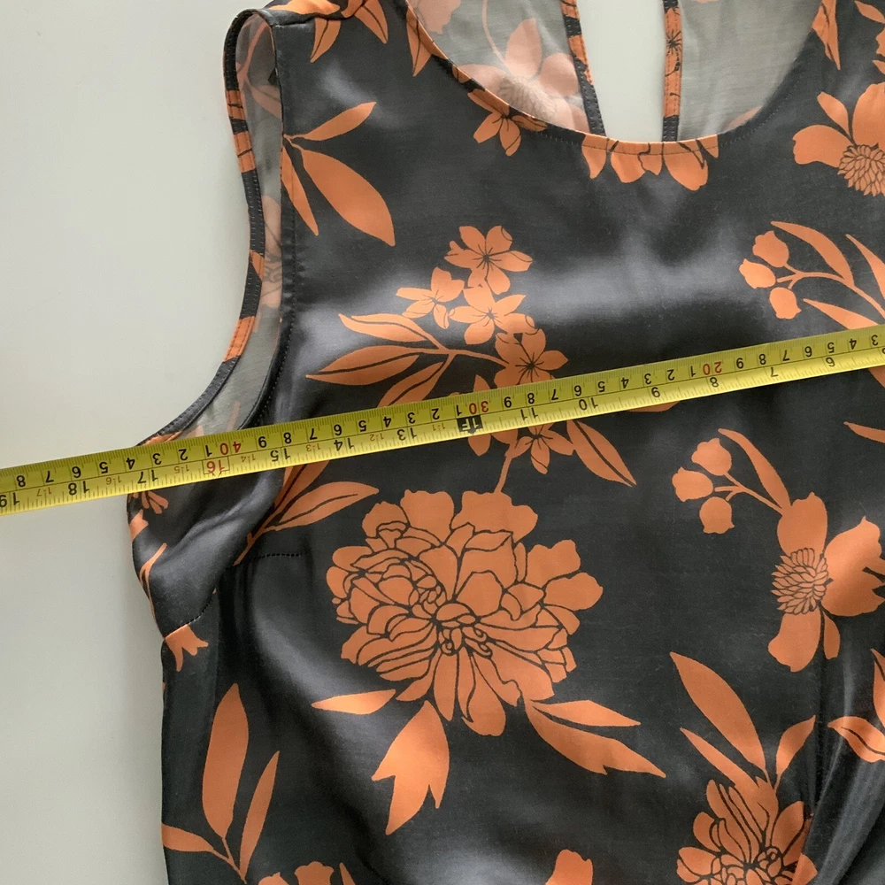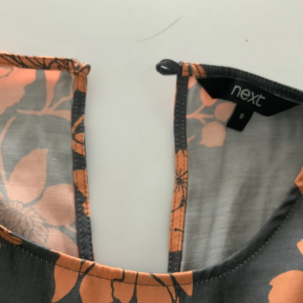 NEXT UK 8 Womens Tank Top Vest grey orange floral Perfect for a casual day in style GOOD used condition See images for sizing of width of top from seam to seam at armpit level when laid flat and also length from top at nape of neck under collar to lower hem Shipped promptly within one working day of sale NOTE there is PREMIUM delivery available at an additional cost please select the upgraded postage on check out