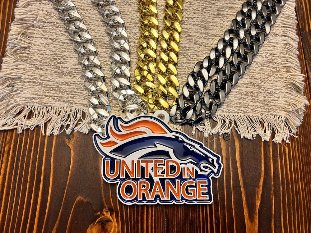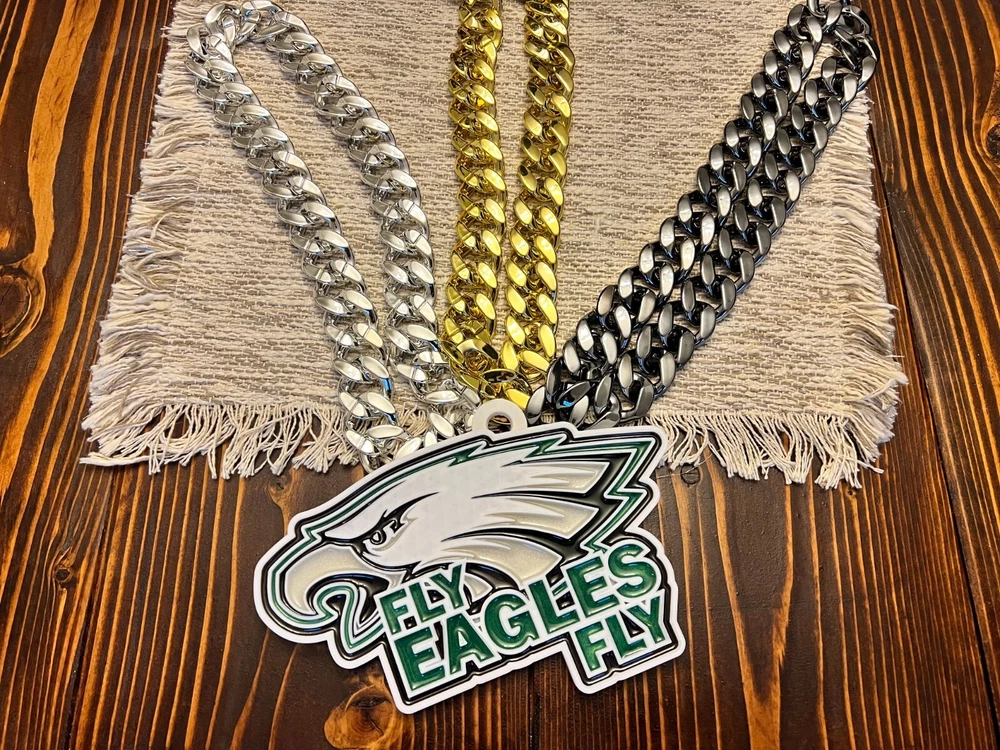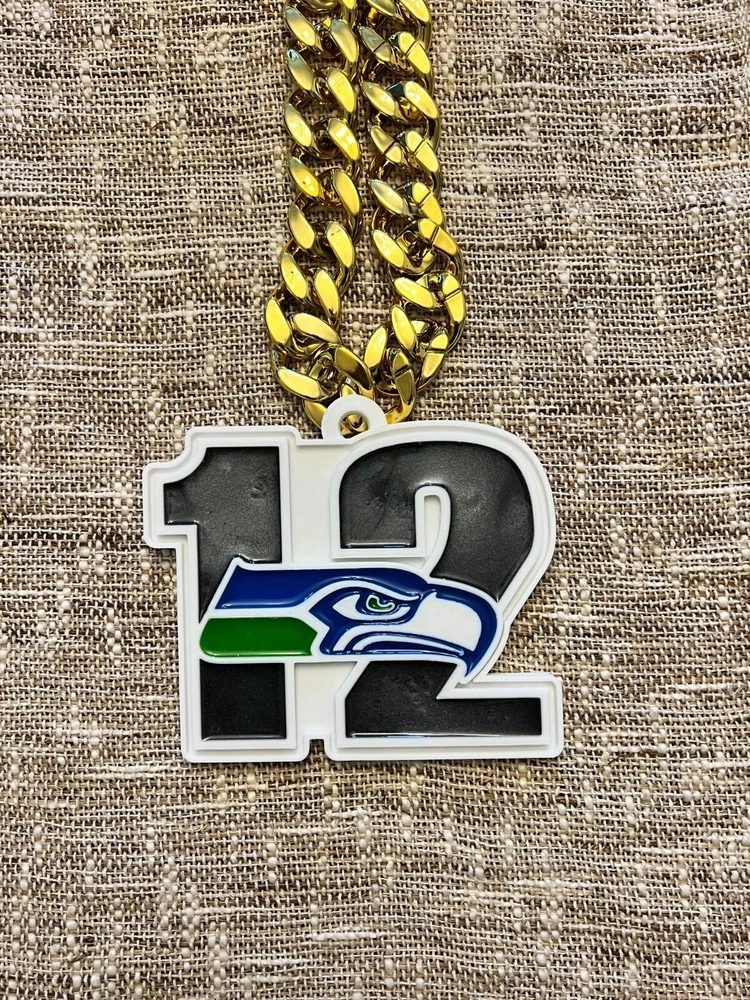 Tired of those cheap foam medallions always ripping and tearing? These solid 3D printed swag chains will last for seasons! Is your friend or family member a huge football Fan? Whether a birthday, Christmas or simply celebrating the start of the new season, our 3D printed Medallions make the perfect gift! These PLA and Epoxy logos can also serve as the perfect addition to any fan cave. Each medallion is approximately 6x6 inches and weighs less than 1lb. Each one is hand-made in the USA and 3D printed, sanded, coated, primed, and painted by hand. The final step is the epoxy pour which leaves a custom one-of-a-kind granite effect. Each medallion has a unique finish and look so final results in the granite effect will vary. Do you want a custom swag chain with your own logo and text? Message me for details. At Fins Place Art we only use Artresin Epoxy which has passed the strict California Prop 65 testing. However, we will still include the warning for shipments going to California.