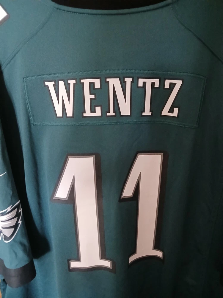 Show your love and support for the National Football League team with this Nike On Field Eagles Wentz #11 Jersey in size 2XL. The jersey features the team's colors and logos with the player's name and number prominently displayed on the back. It's perfect for game day or any day you want to show off your NFL pride. This authentic NFL product is made from high-quality materials to ensure durability and comfort. It's a must-have for any football fan and a great addition to your sports memorabilia collection. Order now and get ready to cheer on your favorite team in style! NEW WITHOUT TAGS!