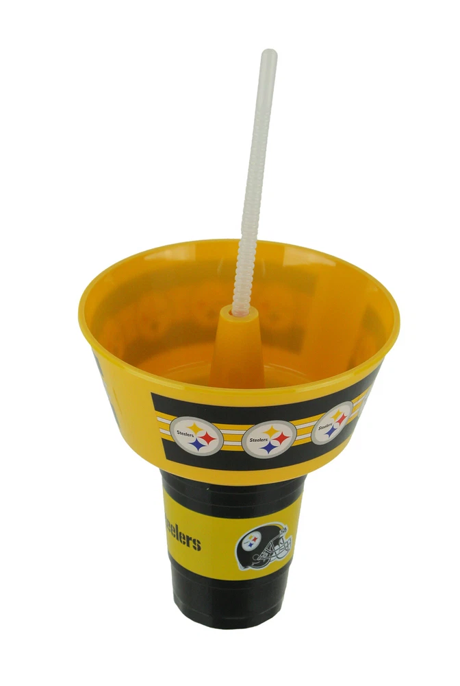 Show your Steelers pride and have your favorite food and drink in one hand with this clever snack tub and tumbler set. It's perfect for game day and lets you carry your food and drink wherever you go. It makes snacking convenient and is great for parties, bbq's, the stadium and camping. It includes the tub, tumbler and straw, and is ready to fill with your favorite food and drink the moment it arrives. It's made of durable plastic so it's easy to clean up and features the Steelers name and logo on the outside. This 12.5 inch high, 7 inch diameter officially licensed grub tub and tumbler is the true meaning of convenience, and makes a great gift any Steelers fan will enjoy. Our eBay Store About Us Add to Favorite Sellers NFL Pittsburgh Steelers Plastic Grub Tub and Tumbler OVERALL SIZE - 12.5 Inches High, 7 Inches in Diameter Made of Durable Plastic Featuring the Steelers Name and Logo Includes a Straw, Snack Tub and Tumbler So You Can Have Your Drink and Snacks in One Handy Location and Easily Carry it Wherever You Go Great Gift for Packers Fans of All Ages and Perfect for Game Day Officially Licensed Show your Steelers pride and have your favorite food and drink in one hand with this clever snack tub and tumbler set. It's perfect for game day and lets you carry your food and drink wherever you go. It makes snacking convenient and is great for parties, bbq's, the stadium and camping. It includes the tub, tumbler and straw, and is ready to fill with your favorite food and drink the moment it arrives. It's made of durable plastic so it's easy to clean up and features the Steelers name and logo on the outside. This 12.5 inch high, 7 inch diameter officially licensed grub tub and tumbler is the true meaning of convenience, and makes a great gift any Steelers fan will enjoy. Product Details Color Yellow Height 12.5 Length 7 Weight 0.5 LB