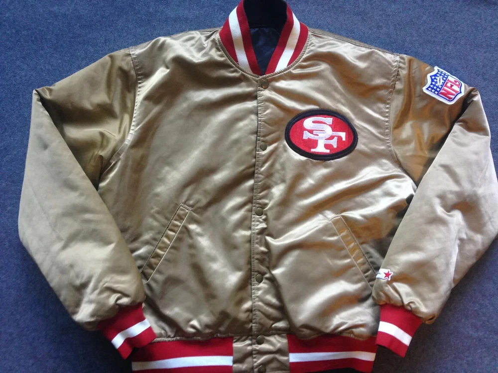 Description Step back into the 80s with this NFL 49ers San Francisco Reversible Satin Bomber Jacket. Featuring a classic gold satin on one side and a sleek black on the other, you get two looks in one. Perfect for 49ers fans or vintage style lovers, this jacket is made with high-quality materials for comfort and durability. Show your team pride and rock a bold, retro style with this must-have bomber. “If you’re looking for bulk orders at competitive prices, please get in touch. Thank you!”