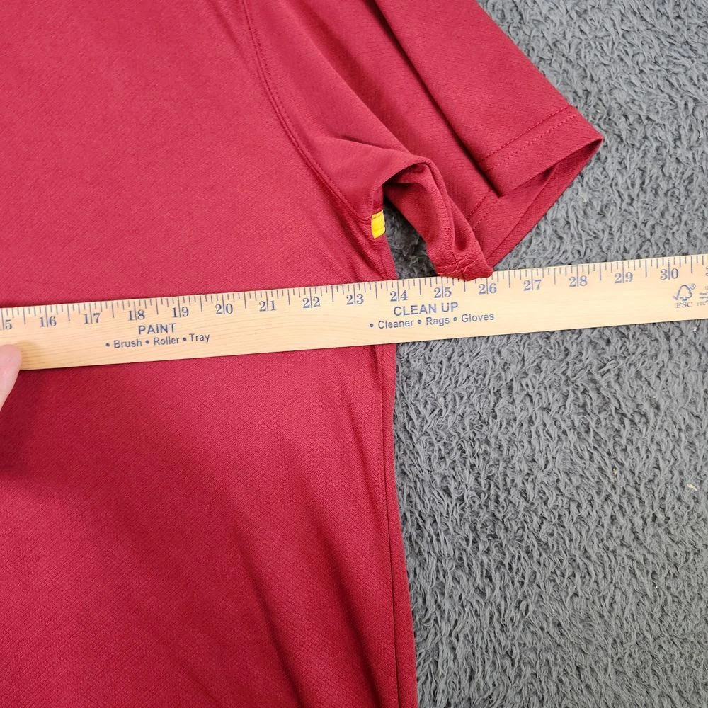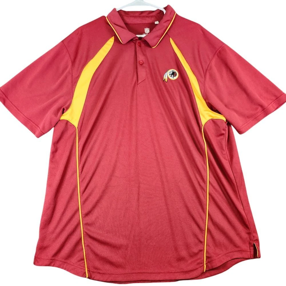 Show your team spirit with this authentic NFL performance polo. Perfect for game days, casual Fridays, or any sports-related occasion. Features moisture-wicking fabric with team colors and embroidered logo. Ideal for tailgating, watching the game, or representing your team at casual events. Professional styling meets fan dedication in this comfortable, athletic-inspired piece. Color: Red Department: Men Type: Polo Performance/Activity: Football Sleeve Length: Short Sleeve Pattern: Solid Fit: Athletic Material: 100% Polyester Features: Moisture Wicking, Breathable, Lightweight, Contrasting Trim Neckline: Collared Keywords: NFL polo, Washington Redskins, football gear, team apparel, performance polo, athletic wear, sports clothing, fan merchandise, game day outfit, moisture wicking, team logo