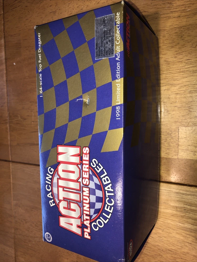 Organization:NASCARgtin13:Does not applyColor:RedRecommended Age Range:AdultAutographed:NoUPC:Does not applyBrand:ActionSeries:Action Platinum SeriesModel:Gary Scelzi 1:64Race series:WinstonScale:1:64Vehicle Type:NHRA DragsterMaterial:DiecastCountry/Region of Manufacture:ChinaVehicle Make:DragsterDriver:Gary ScelziFeatures:With Case, With StandVehicle Year:1998