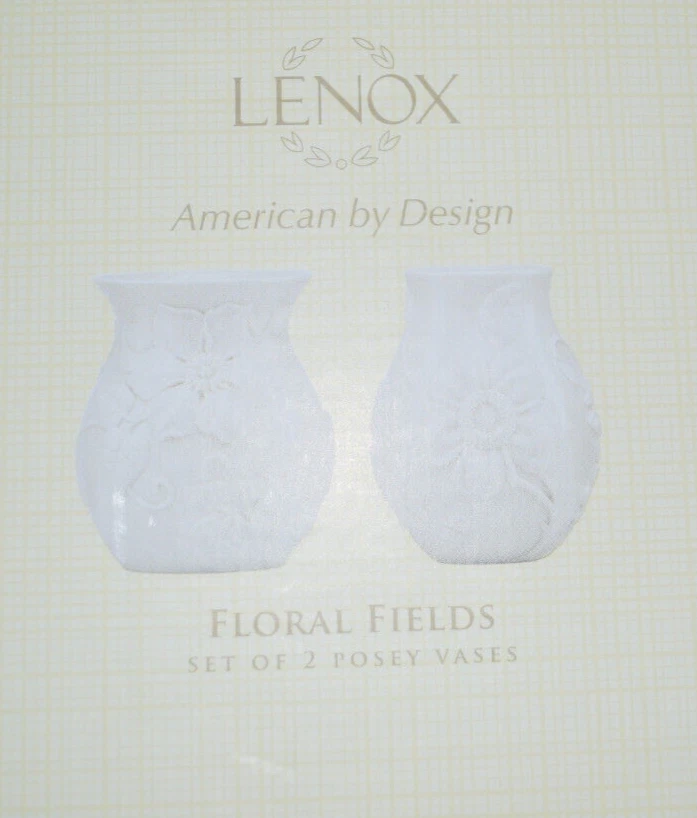 NEW in Box LENOX Floral Fields Set of 2 Posey Vases - 4.5 in. High (the styrofoam holding the vases in the box tore in a few places when I opened the box to take photos)