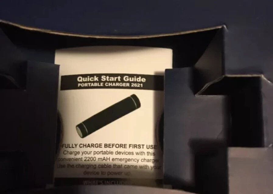 NIB Portable Charger 2621. Comes with micro USB charging cable Charge your portable devices with this convenient 2209 mAh emergency charger USB charge in 3 hours depending on USB port power level Thanks