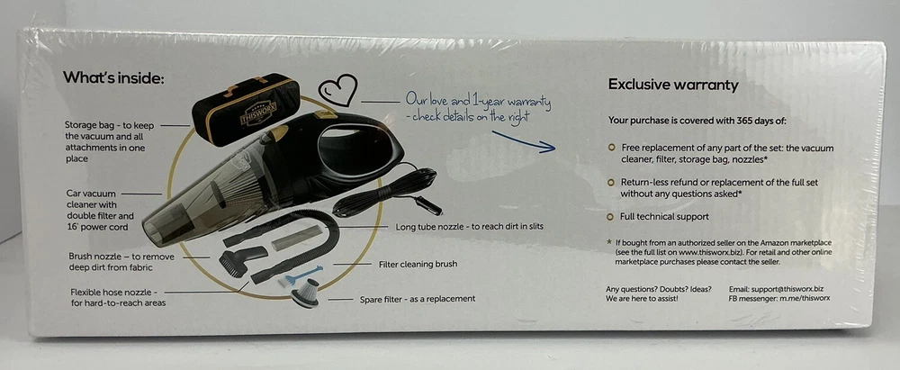 ThisWorx for TWC-01 12V Car Vacuum Cleaner-Portable, Mini Handheld Vacuum, Black is a high-quality vacuum cleaner designed to make your life easier. It is a compact and powerful vacuum cleaner that can be used for different purposes, including cleaning your car, home, and office. The vacuum cleaner has a HEPA filter that ensures that it captures all the dirt and dust particles, leaving your space spotless. It comes with a cord rewind feature that ensures that the cord is neatly stored away, while the rinsable filter makes it easy to clean. The vacuum cleaner is bagless, making it easier to empty and clean. Its lightweight design make it easy to move around and store. With its versatile features, including pet hair removal, carpet cleaning, and edge cleaning, this vacuum cleaner is the perfect tool for anyone looking for a powerful and efficient cleaner.