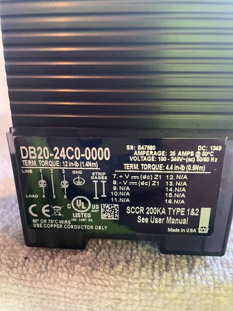 Up for sale is a NIB Watlow DB20-24C0-0000 Solid State Power Controller. Please see pictures. Any questions let me know. Thank you.