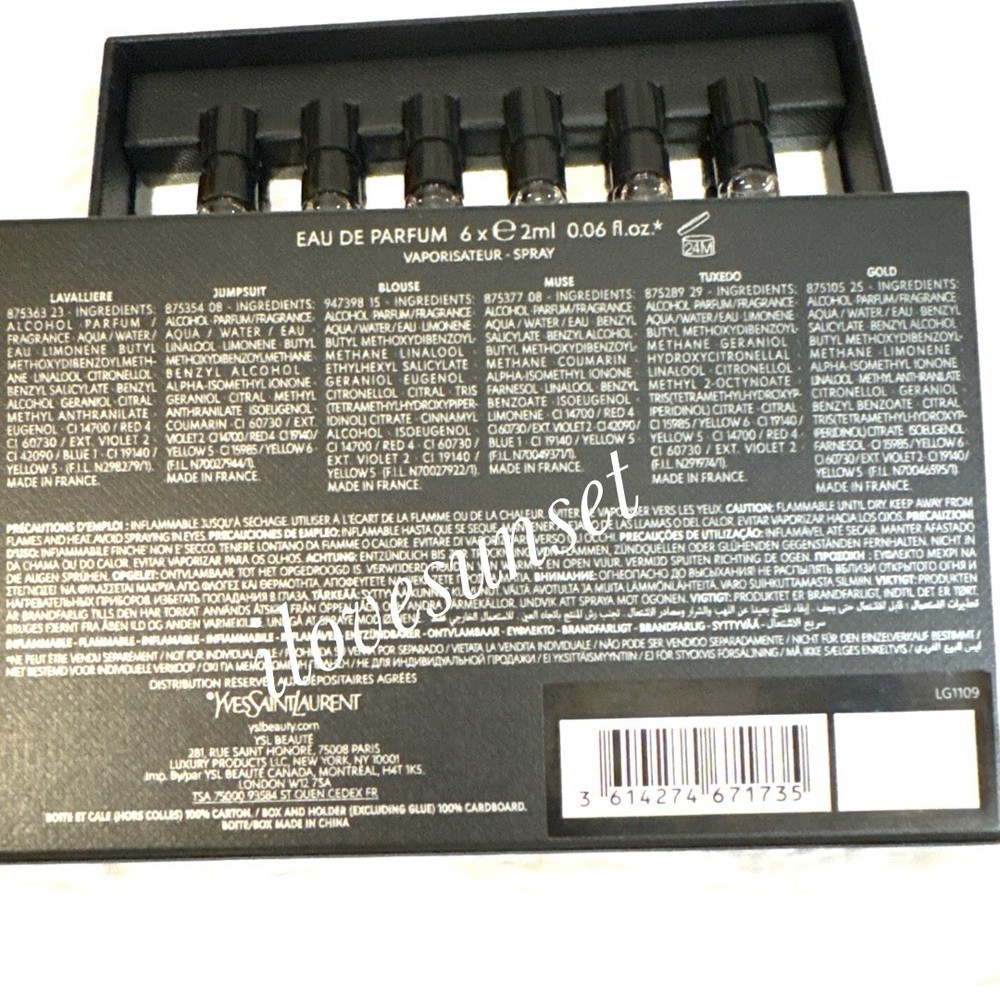 NIB YVES SAINT LAURENT “LE VESTIAIRE” GENDERFREE: DES PARFUMS VARIETY 6-Sample vials. - Eau de Parfum - 6 x 2ml / 0.06 Fl oz ⭐️ All items are guaranteed authentic. ⭐️ Orders are shipped within 24 hours of purchase (Mon-Fri, except holidays) with meticulous handling and shipping. ⭐️ To ensure a perfect fit, please ask any questions before making your purchase! ⭐️ For hygiene reasons, returns of cosmetics, perfumes, colognes, and lotions cannot be accepted under any circumstances, except if we mistakenly sent you the wrong products! ⭐️ A restocking fee of 35% will be applied if you choose to return the item, and return shipping is at your own expense. Items must be returned in their original condition and packaging. 🌟 Thank you for visiting and shopping from my online store!