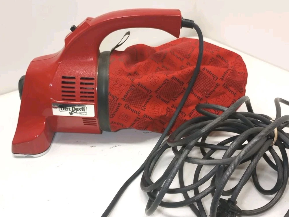 This Royal Dirt Devil 20ft Corded Hand Vacuum Cleaner Model 503 is a powerful and efficient tool for cleaning your home. With its rotating brushes and compact design, it can easily tackle dirt and dust on both carpets and hardwood floors. The vacuum is bagged, making it easy to dispose of the dirt and debris collected during cleaning. The Dirt Devil comes with a brand new belt, hanger, and belt tool, ensuring that it is ready to use right out of the box. Its 12V voltage and 120V power make it a reliable option for cleaning your home. The vacuum is also portable, making it easy to move from room to room as needed.