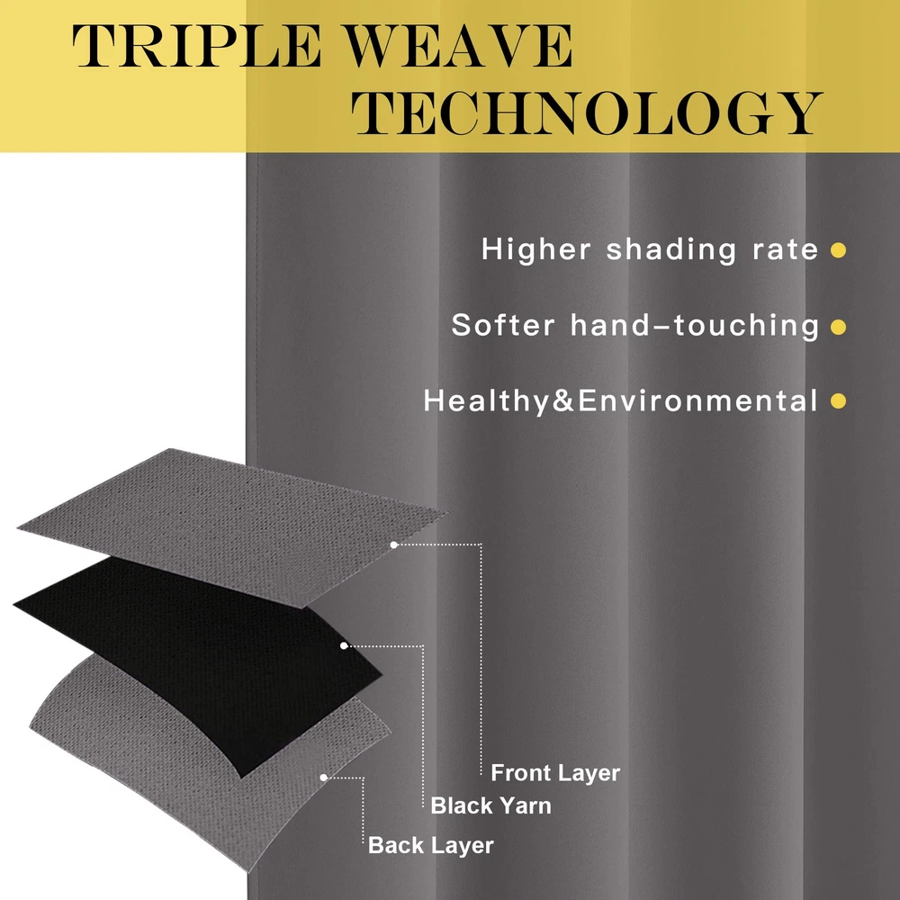 AMAZING FABRIC: The blackout curtain's fabric is super soft and heavy innovative triple-weave polyester fabric. Same material back as of front makes it appear more elegant. The 14 sliver grommets top (inner diameter is 1.6-inch) adds a modern touch and easy hanging. MULTIPLE FUNCTIONAL: These extra wide curtains are wide enough to covering sliding door perfectly. Besides, the curtain panel helps your patio door to block out most of light and UV ray, high performance on thermal insulated, noise reducing and privacy protecting. ENERGY SMART: Triple weave blackout fabric balances room temperature by insulating against summer heat and winter chill, reducing air conditioning costs. Protect your furniture, floors and artwork from the ravages of the sun, the Patio Door Drapes will pay for themselves off over time. WISE COMPATIBLE: Thread trimmed and wrinkle free, all sets for you to put them up right away. Suitable perfectly for: sliding door, patio door and any large window. These wide curtains can be hung separately, or combine with NICETOWN sheer curtains. EASY CARE: Good quality finishing will withstand years of use. Machine washable and Wash the water temperature below 86F. Mild detergent no bleaching. Low temperature ironing. Don’t use sharp things scratching curtains.
