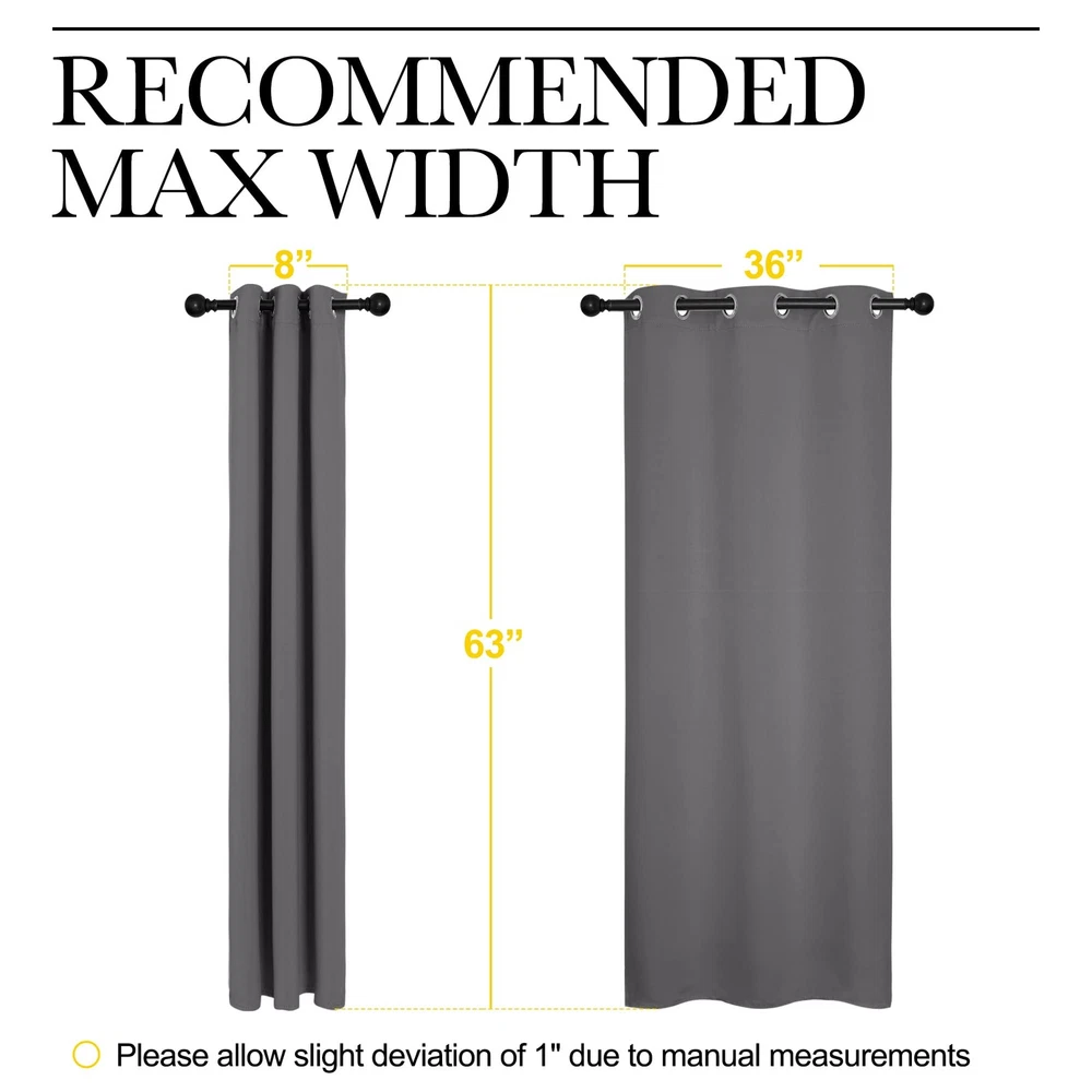 NICETOWN Blackout Curtains are so much more than just bits and pieces of fabric that are sewn together to prevent sunlight from entering your home, they go beyond that mundane function and provide additional benefits that do not meet the eye instantly. Light Blocking Energy Savers. Having the heavy, multi-layered microfiber blackout window curtains or drapes can make a world of a difference in reducing the amount of light that comes in from outside, which has green-conscious consumers excited about investing them as energy-efficient window treatments. A home insulated and remains warmer in wintertime relieves the strain on home heating and reduces 25 percent energy budget at most. Sleep Soother n Noise Buffer. It's hard to get babies to take a rest during the day when the sun is streaming brightly through a bedroom window. Blackout curtains encourage the best possible sleep and most comfortable setting for day sleepers and the ones who have trouble falling asleep, by automatically darkening and lowering noise levels. Absolute Privacy n Relax. Not only that but also make your resting zone truly blissful. They would be perfect for any home theater and supply you with the enjoyment of watching TV in real darkness. If you are looking for great and cost-effective ways of re-inventing the look of your home, NICETOWN readymade curtains would be the game changer in your shopping cart. They are crafted for the topmost and luxury, coming with the strong grommet ring top for easy installation and smooth sliding over a rod. Each curtain panel is carefully ironed and ready to serve as your window dressing. What color do you like? READY MADE: Set includes 2 BLACKOUT CURTAINS PANELS of 42" wide x 63" length with 6 grommets top each. Quality fabric without liner feels soft and heavy. SERVE WELL: Curtains impede 85%-99% light and UV rays(Dark color curtains work well). Noise-reducing, better TV viewing thanks to the innovative triple weave technology. ENERGY SMART: Triple weave blackout fabric balances room temperature by insulating against summer heat and winter chill. Protect your furniture, floors, and artwork from the ravages of the sun, the drapes will pay for themselves off over time. GOOD TO GO: Thread trimmed and wrinkle-free, ring (1.6-inch inner diameter) fits easily with standard curtain rods. All sets for you to put them up right away. EASY TO MAINTAIN: NICETOWN blackout curtains are made to last. Machine washable in cold water, tumble dry. Quick ironing or steam clean when needed. Visiting the NICETOWN store, find out your favorite curtains.