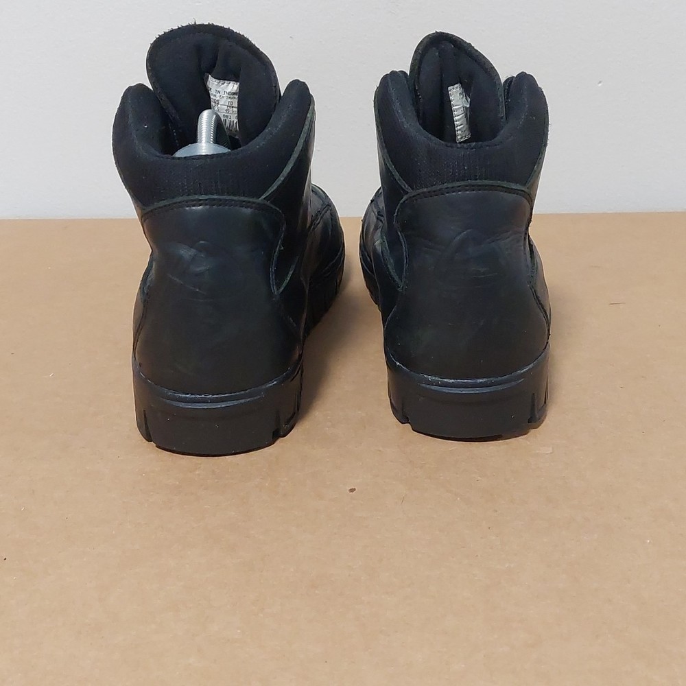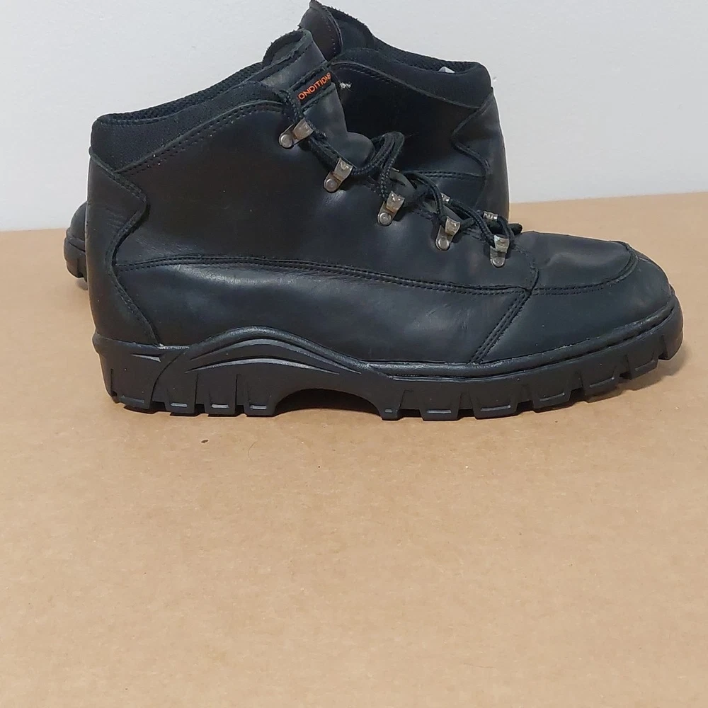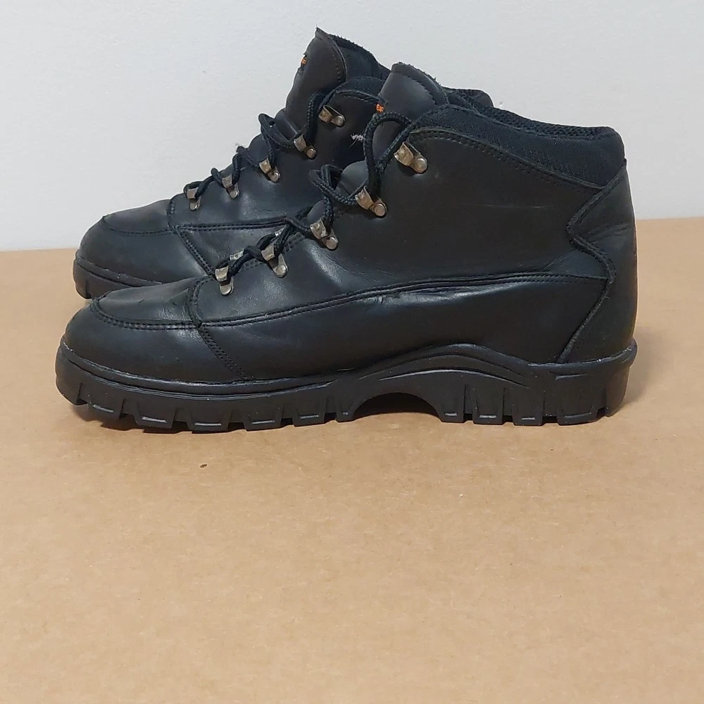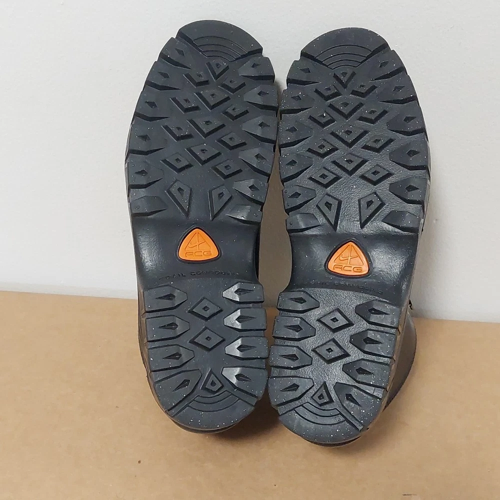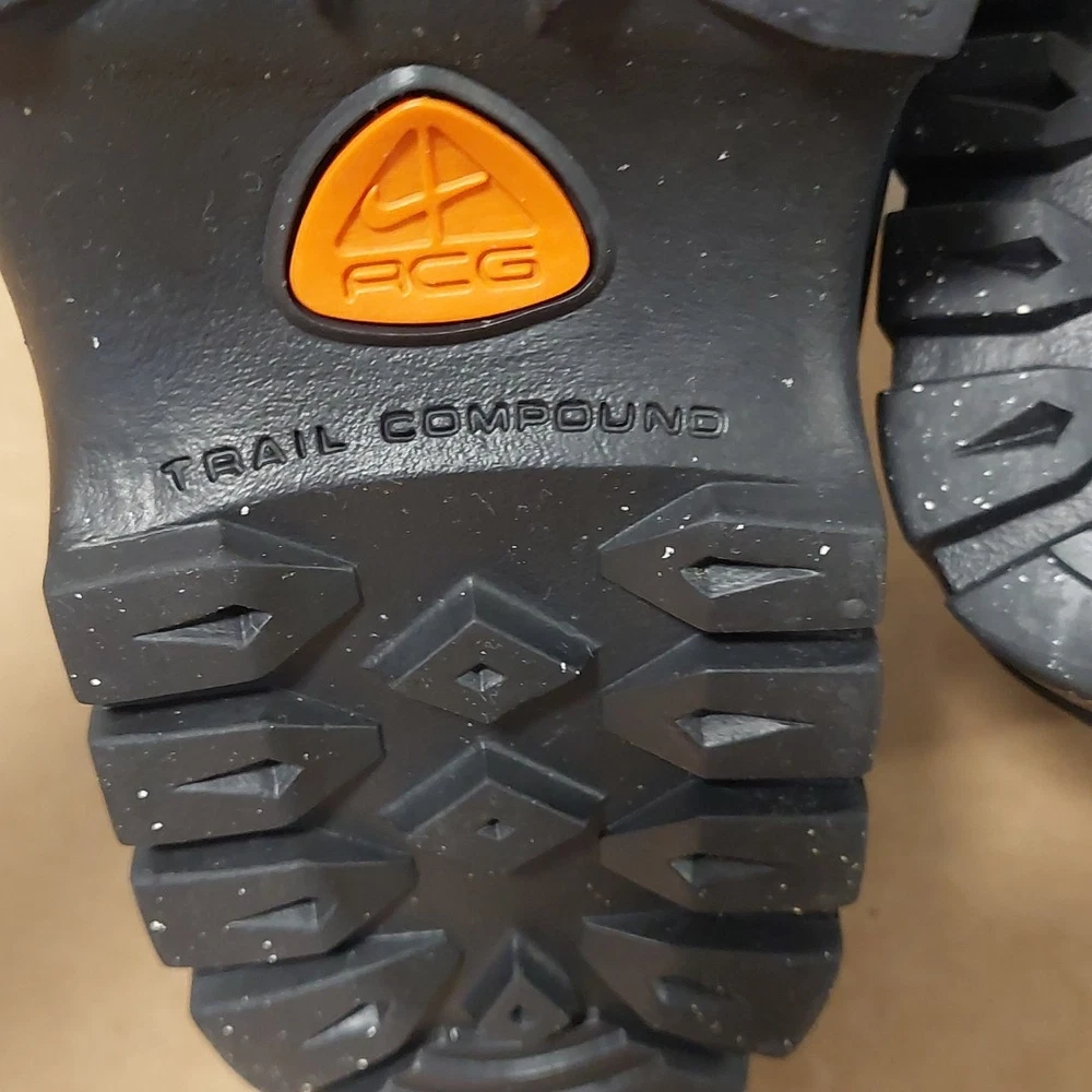 The NIKE ACG Hiking Trail Compound Black Boots in size 11.5 are a high-quality hiking boot designed for outdoor enthusiasts. Made by the renowned brand Nike, these black boots are durable and reliable for tackling various terrains on hiking trails. The medium width and sturdy construction make them comfortable and supportive for long walks, while the insect repellent treatment ensures you're protected from pesky bugs. Whether you're exploring mountains or just taking a leisurely stroll, these boots are a great choice for any outdoor adventure.