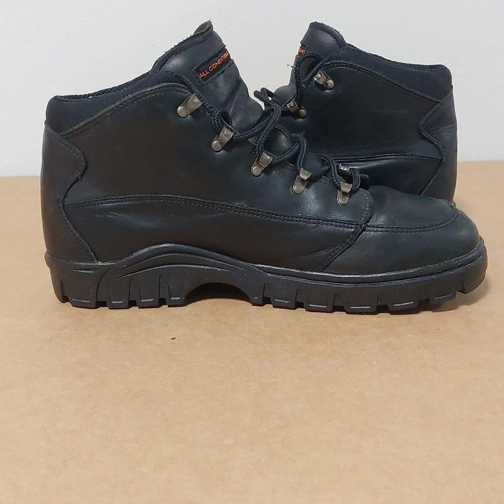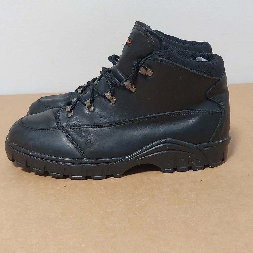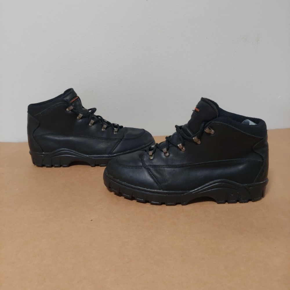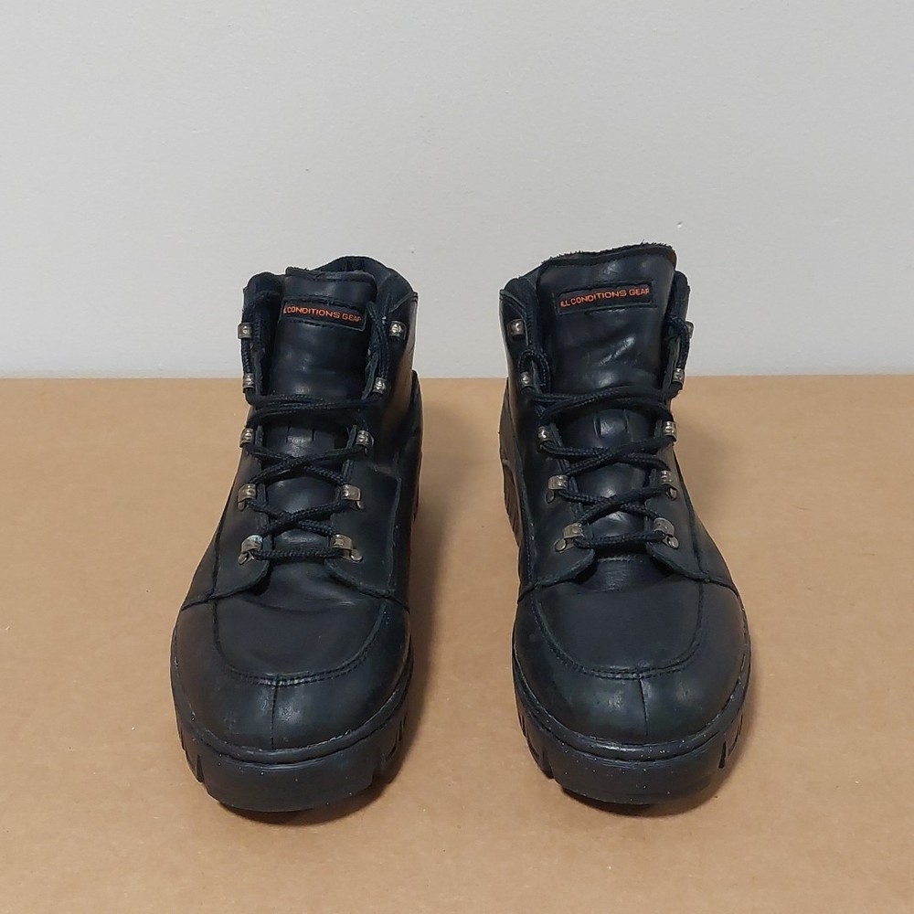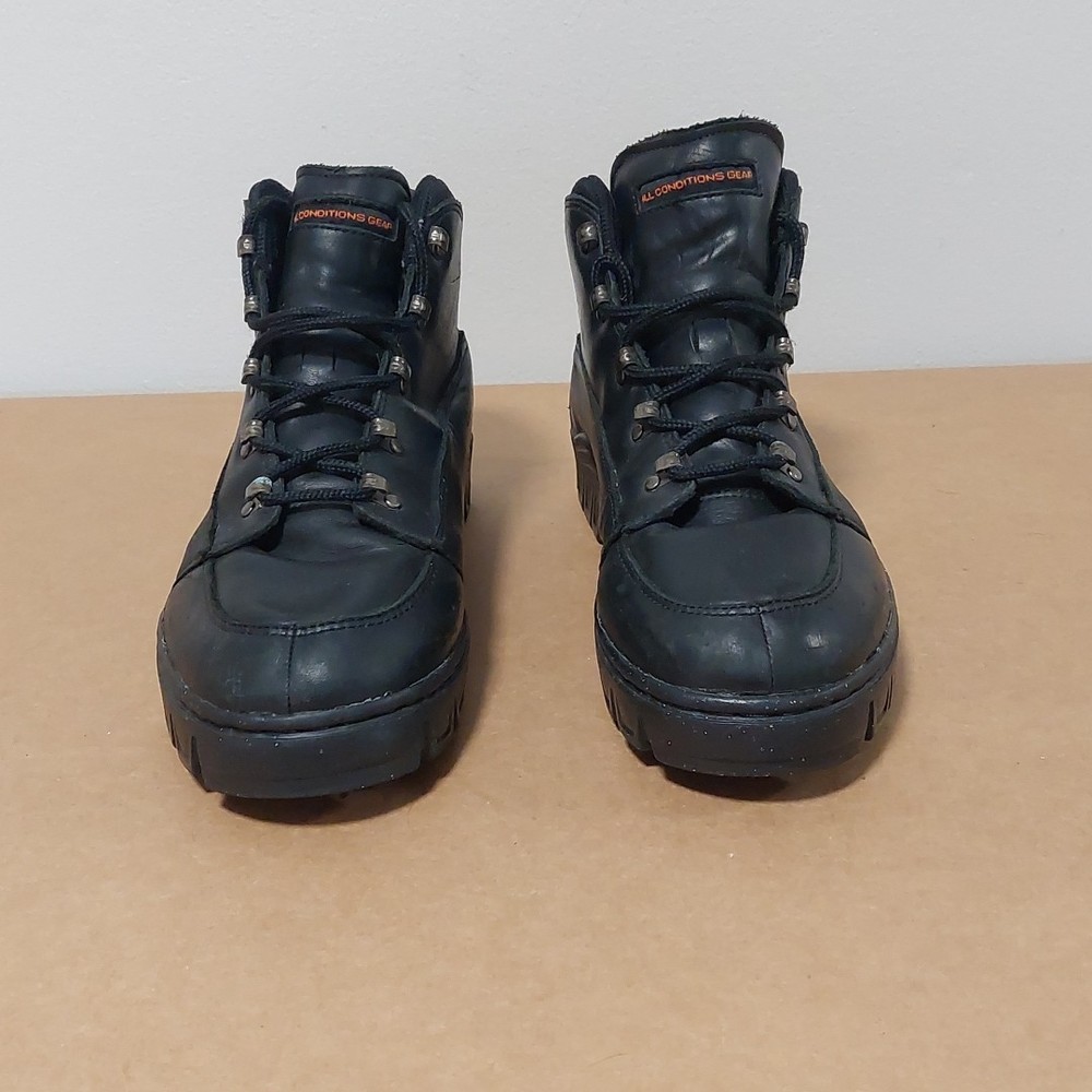 The NIKE ACG Hiking Trail Compound Black Boots in size 11.5 are a high-quality hiking boot designed for outdoor enthusiasts. Made by the renowned brand Nike, these black boots are durable and reliable for tackling various terrains on hiking trails. The medium width and sturdy construction make them comfortable and supportive for long walks, while the insect repellent treatment ensures you're protected from pesky bugs. Whether you're exploring mountains or just taking a leisurely stroll, these boots are a great choice for any outdoor adventure.