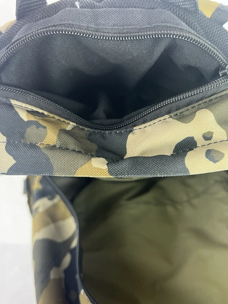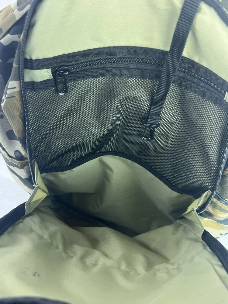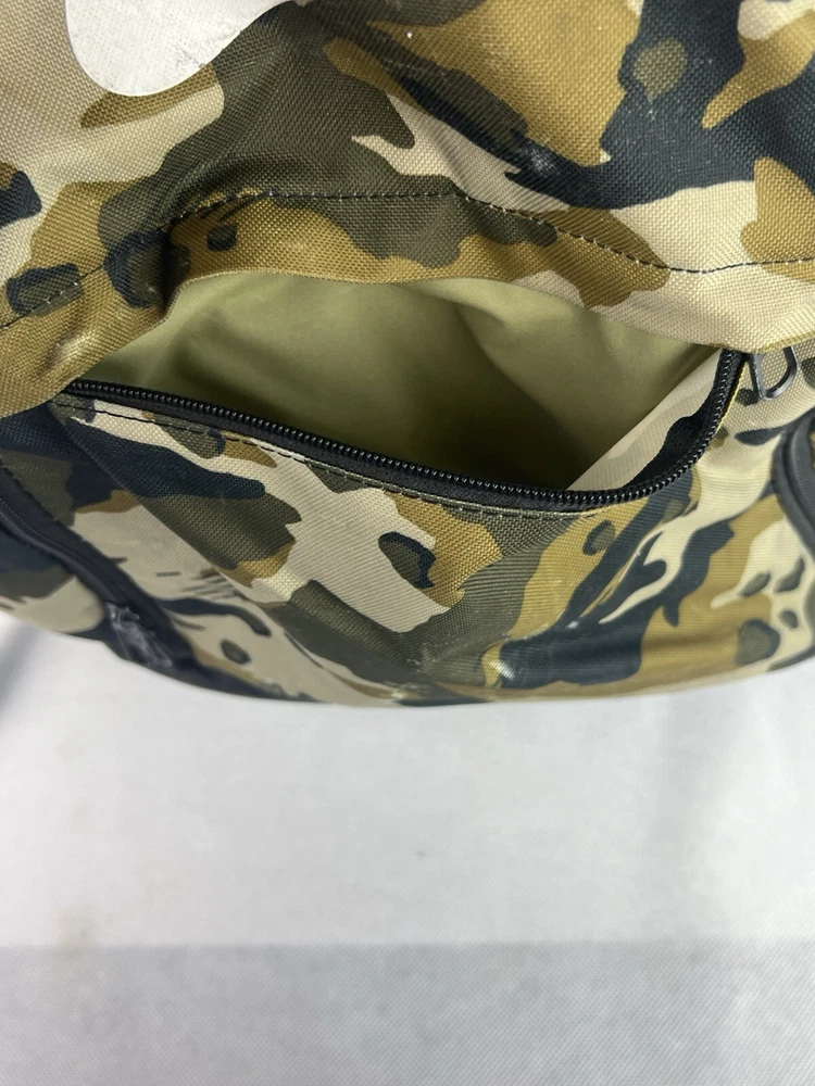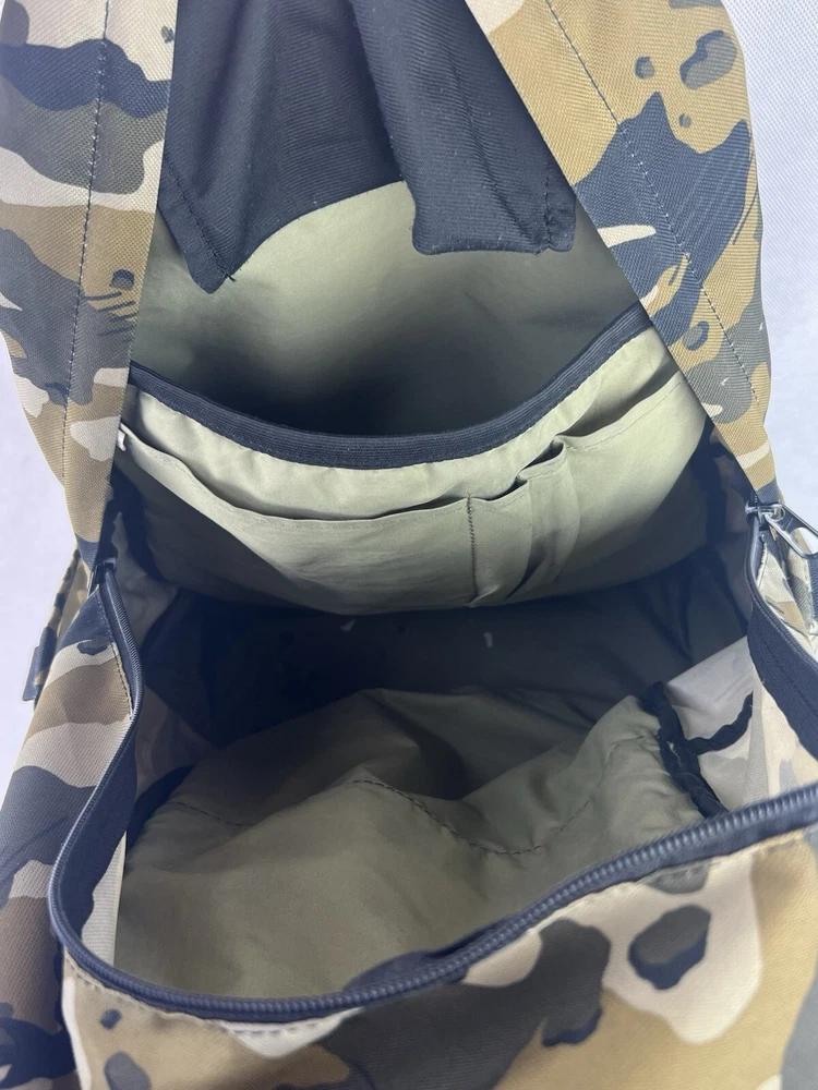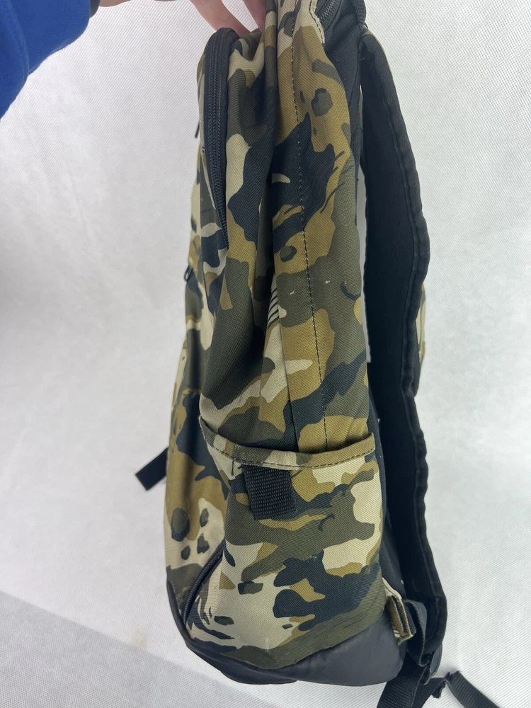 The product is a Nike Brasilia XL Camo Laptop Backpack in a khaki camouflage pattern. Designed for men, this colorful backpack is made of polyester material and features inner and outer pockets, inner dividers, a laptop sleeve for protection, adjustable straps, and a lightweight design. With a spacious interior and plenty of pockets, this backpack is ideal for carrying a laptop and other essentials while on the go.