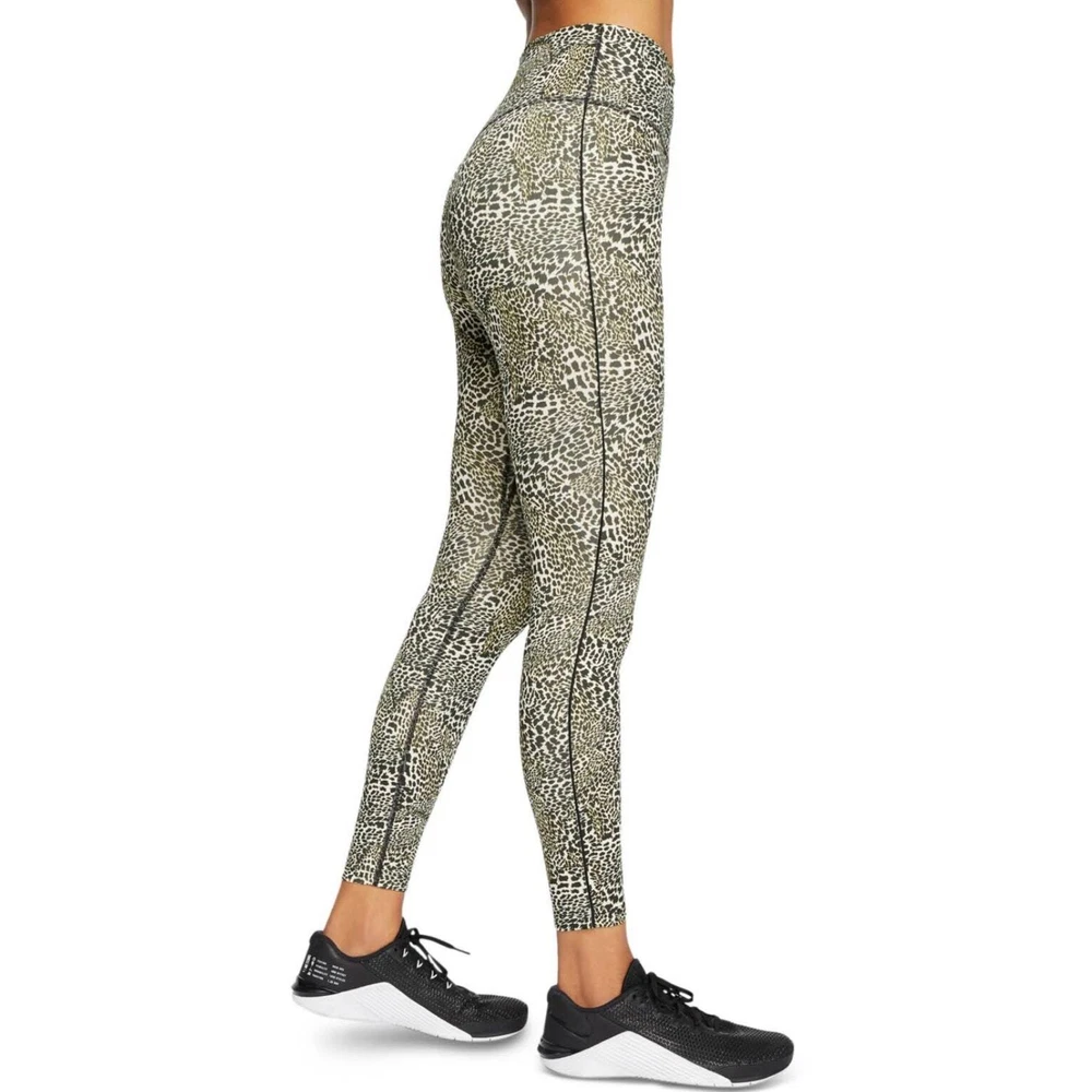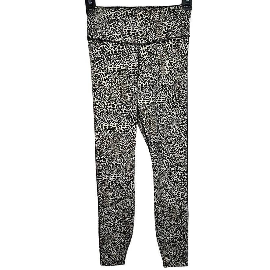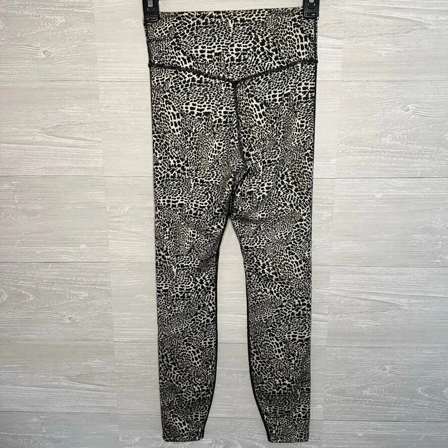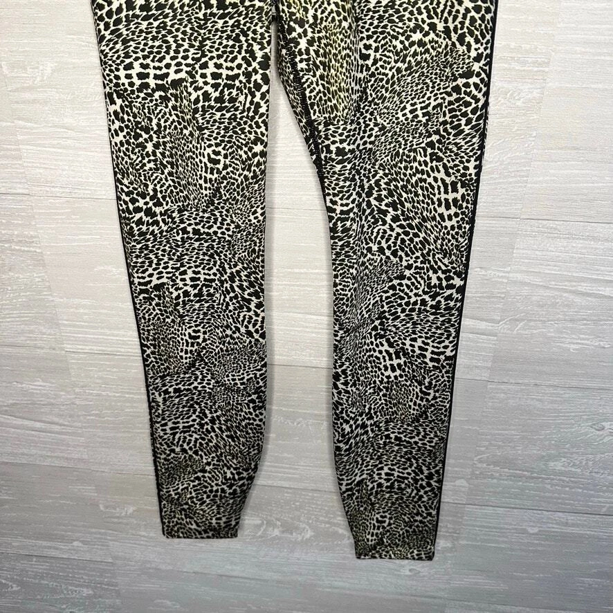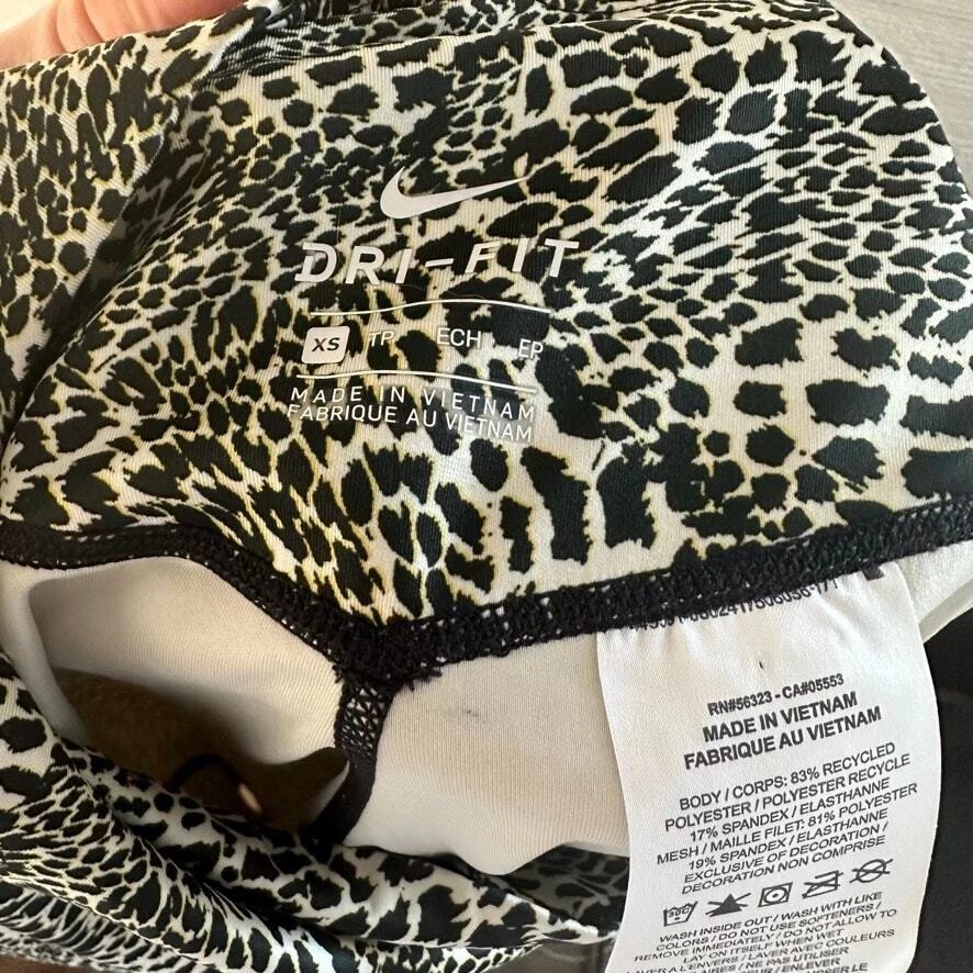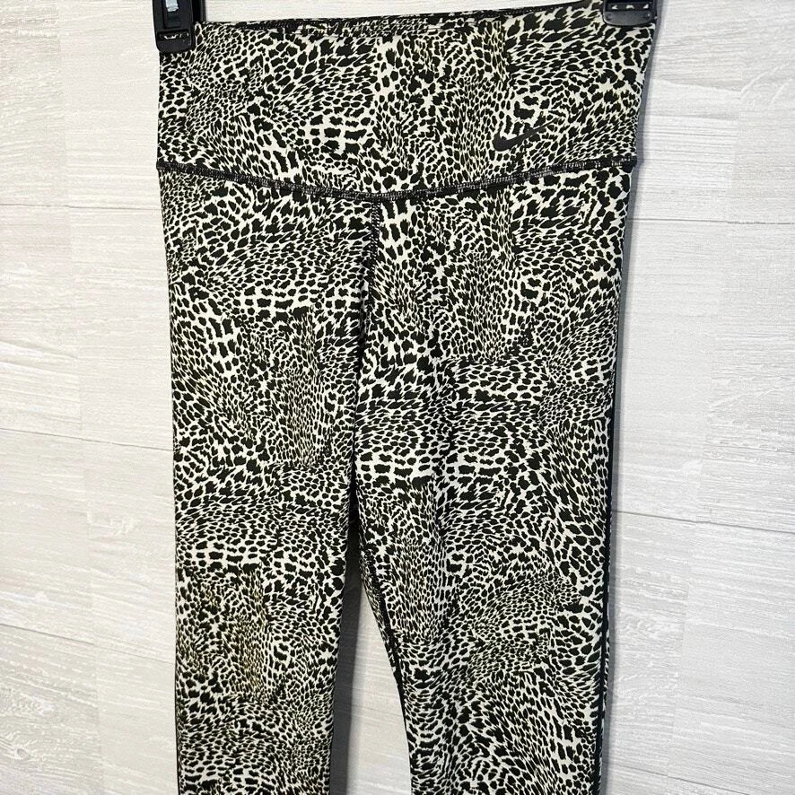 NIKE DRI-FIT Black Yellow Animal Print Athletic Exercise Workout Leggings Last photo shows a better representative of color pattern Size XS Super soft and comfortable, good stretch Great condition, no stains or tearing Waist flat - 11" Rise - 7" Inseam - 26"