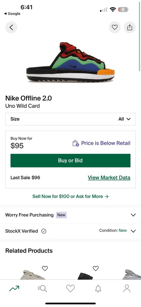 NIKE Offline 2.0 Slide 11 Mens Uno Wild Card Green Spark Red Blue Yellow PRM QS. Condition is Pre-owned. Shipped with USPS Ground Advantage.