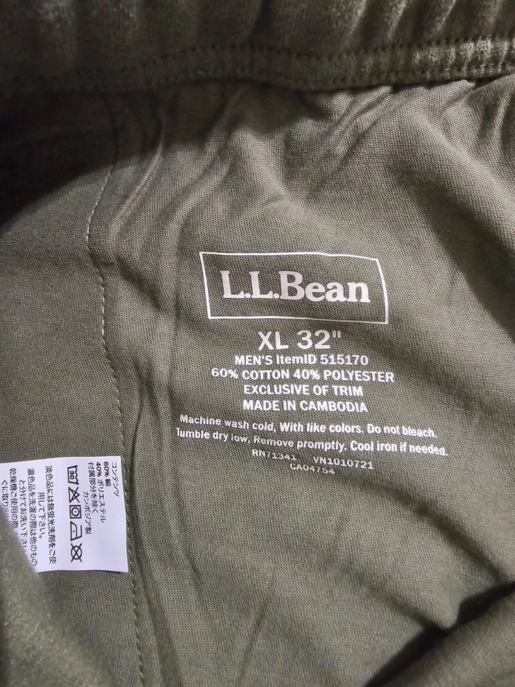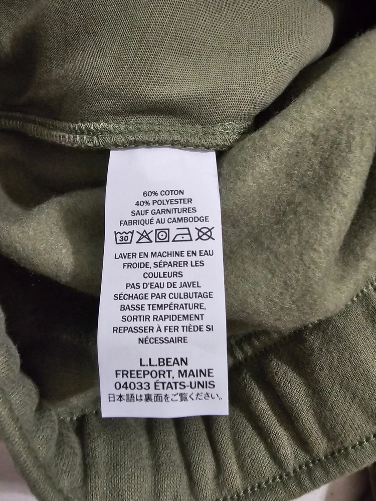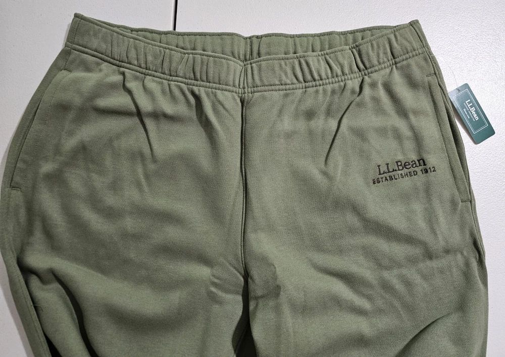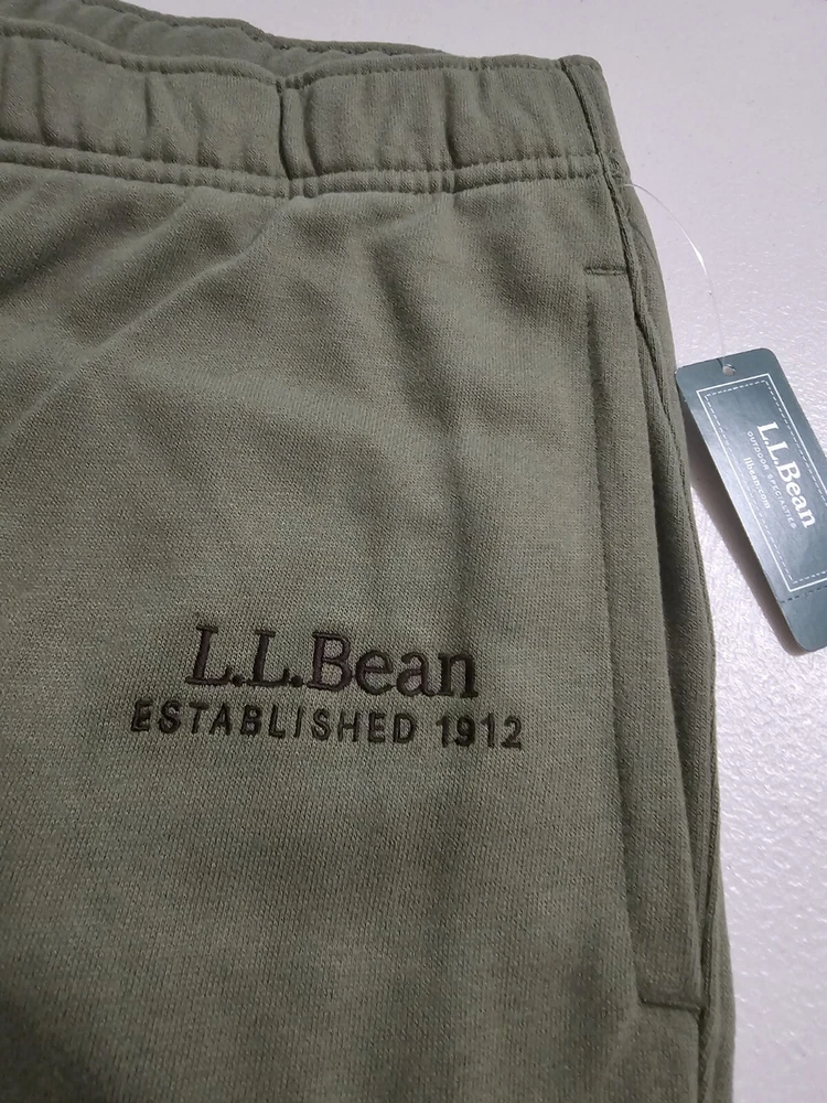 If you especially want something comfortable to wear, these are it. They are so soft! Men's LL Bean XL Deep Olive sweatpants with side pockets and elastic with drawstring waist. The legs are just straight at the bottom, with no zipper or elastic. 60% Cotton 40% polyester New in package. I removed it from the package to measure and take pictures. Measurements: Waist : 36" Inseam: 32" Measured lying flat. Waist is elastic with drawstring, so it can accommodate a little range in sizing. Returns accepted within 30 days in same condition as purchased. Buyer pays return shipping. Shipping: I'm packing this tightly in a Priority Mail to save on shipping.