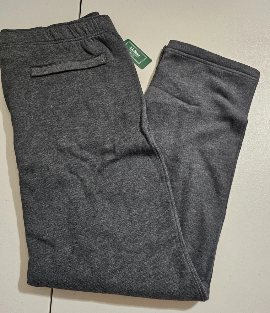 If you especially want something comfortable to wear, these are it. They are so soft! Men's LL Bean XL Charcoal Heather sweatpants with side pockets and elastic with drawstring waist. The legs are just straight at the bottom, with no zipper or elastic. 60% Cotton 40% polyester New in package. I removed it from the package to measure and take pictures. Measurements: Waist : 36" Inseam: 32" Measured lying flat. Waist is elastic with drawstring, so it can accommodate a little range in sizing. Returns accepted within 30 days in same condition as purchased. Buyer pays return shipping. Shipping: I'm packing this tightly in a Priority Mail to save on shipping.