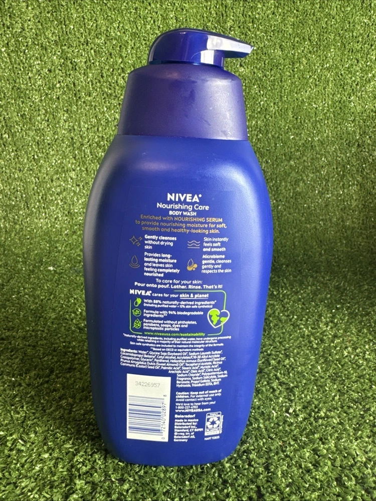 NIVEA Nourishing Care Body Wash with Nourishing Serum, 30 Fl Oz Pump Bottle. SKU-n4 Date-10/23/24 Listed by-TH/TM Condition-new Size/shade-30 oz