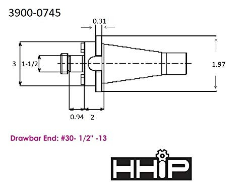 #30 NMTB X 1-1/2" Shell End Mill Holder ~ Drawbar end is 1/2"-13. ~ Bore is 1-1/2". #30 NMTB X 1-1/2" Shell End Mill Holder Drawbar end is 1/2"-13 Bore is 1-1/2" Country of origin: China