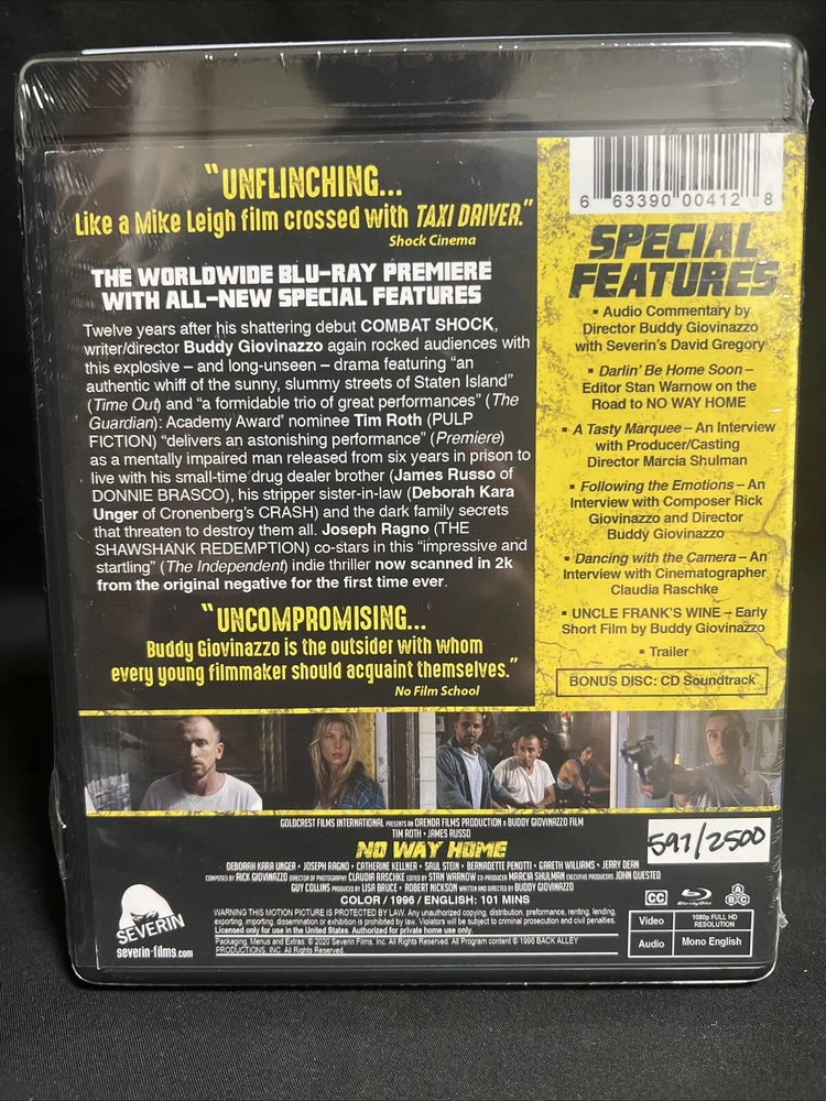 Edition:Limited EditionCinematic Movement:Art/Indie FilmLanguage:EnglishRelease Year:1996Region Code:Blu-ray: Region FreeMovie/TV Title:No Way HomeUPC:0663390004128Genre:DramaType:MovieDirector:Buddy GiovinazzoFormat:Blu-raySub-Genre:ThrillerCountry/Region of Manufacture:United Statesgtin13:0663390004128Actor:Tim Roth, Deborah Unger, James Russo, Joseph Ragno