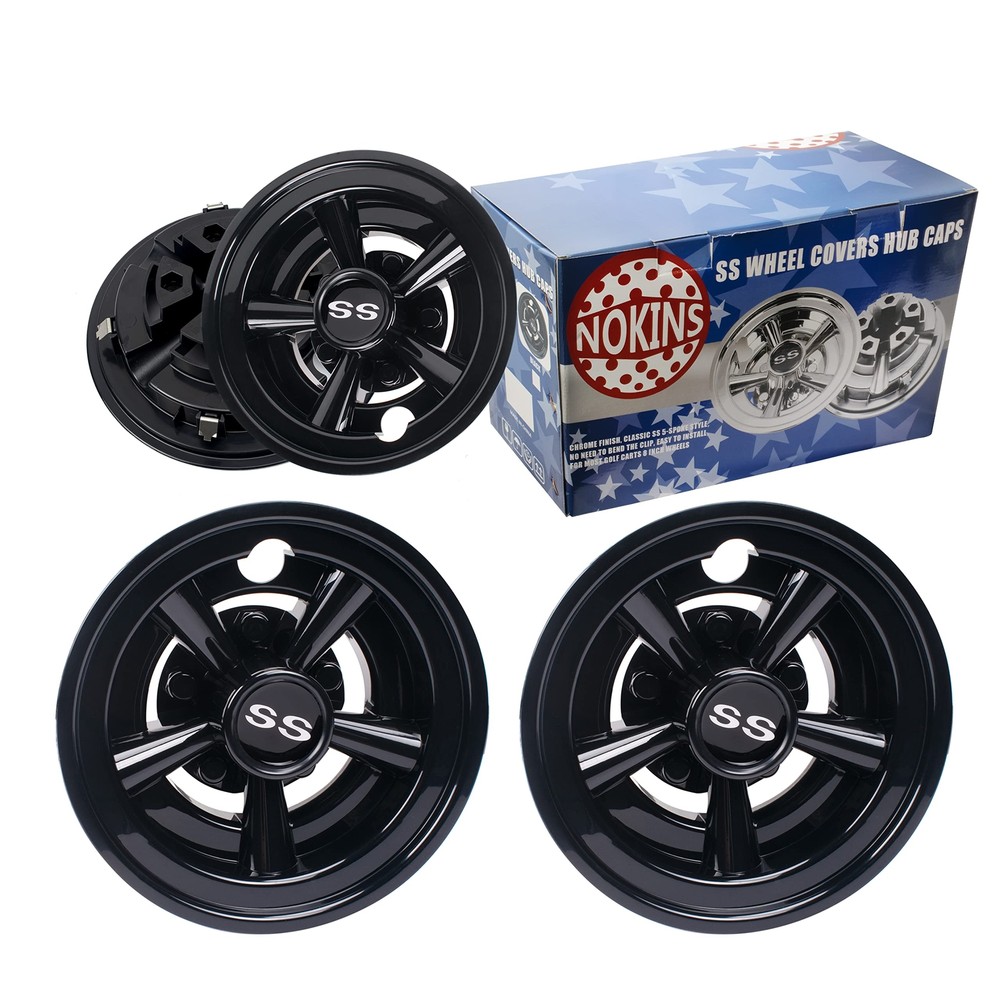 Golf Cart SS Wheel Covers Hub Caps for Most Golf Carts 8 inch(Set of 4) Chrome Finish, Classic SS 5-Spoke Style (Black) 8 Inch wheel Covers for EZGO, Yamaha, and Club Car Golf Carts. DOES NOT FIT EZGO RXV carts. Only fits 8-inch wheels. Indicating curing treatment, high gloss, scratch resistance.classic SS 5-spoke style improves your golf cart's look. The hub cap is installed very tightly to ensure it is firmly secured to the rim. No need to bend the clip, easy to install, just click into place, easy to remove. Golf Cart Hub Caps Durable and High Quality built to last, the covers were a very tight fit and they’re in nice and snug. Shipping We offer FREE shipping on all orders! We ship within Three business days of payment, usually sooner. We use a selection of shipping services such as UPS, FedEx, USPS etc. We only ship to the lower 48 states, no APO/FPO addresses or PO Boxes allowed. Local pickups and combined shipping options are not provided at this time. Return You can return a product for up to 30 days from the date you purchased it. Any product you return must be in the same condition you received it and in the original packaging. Please keep the receipt. Payment We accept payment by any of the following methods: PayPal Please pay as soon as possible after winning an auction, as that will allow us to post your item to you sooner! Feedback Customer satisfaction is very important to us. If you have any problem with your order, please contact us and we will do our best to make you satisfied. Contact Us If you have any queries, please contact us via ebay. We usually respond within 24 hours on weekdays. Please visit our eBay store to check out other items for sale! Thank you for shopping at our store.