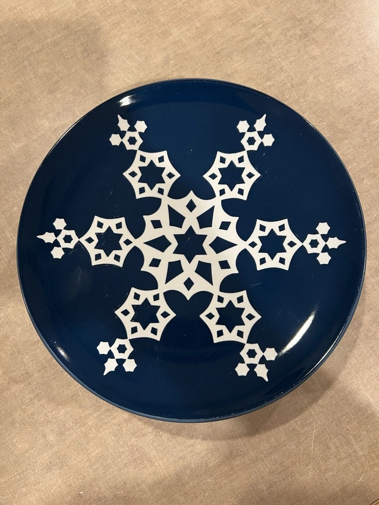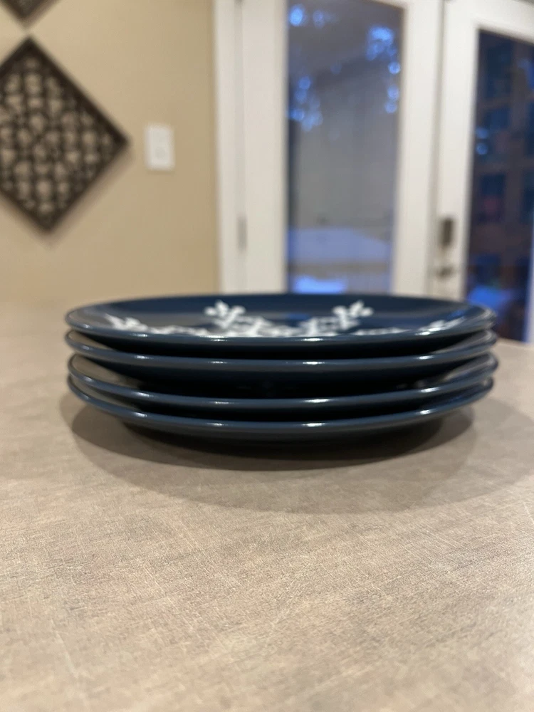 Add a touch of elegance to your holiday table with this set of four Noritake Colorwave Blue salad plates. The round plates feature a beautiful snowflake pattern, perfect for the winter season. Made of durable stoneware material, these plates are sure to withstand the wear and tear of daily use. The backstamp is printed and the product line is Noritake. This four-piece set includes a total of four plates, making it an excellent choice for Christmas or winter occasions.